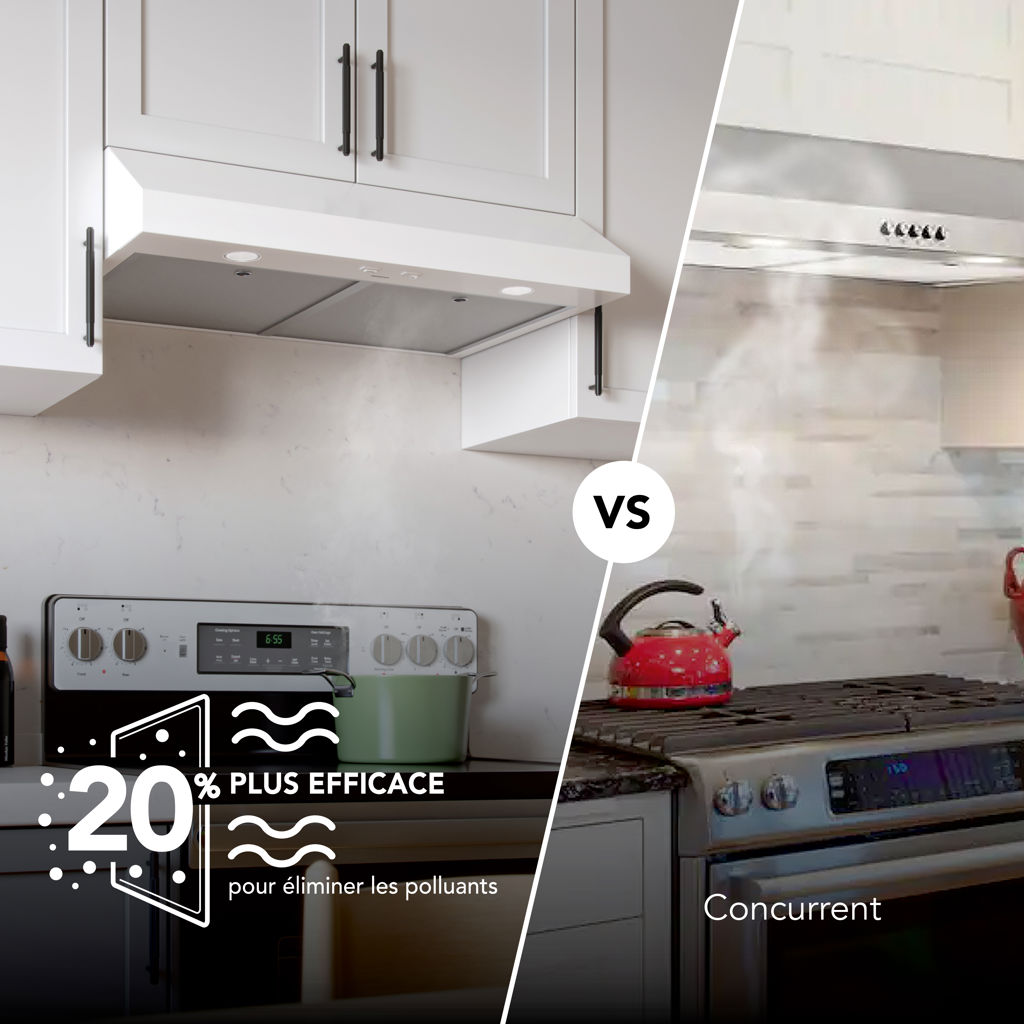 The durable hood vent is up to 20% more effective at removing pollutants than the leading competitor with power ventilation at 350 Max Blower CFM to capture and remove smoke and odors from the kitchen.