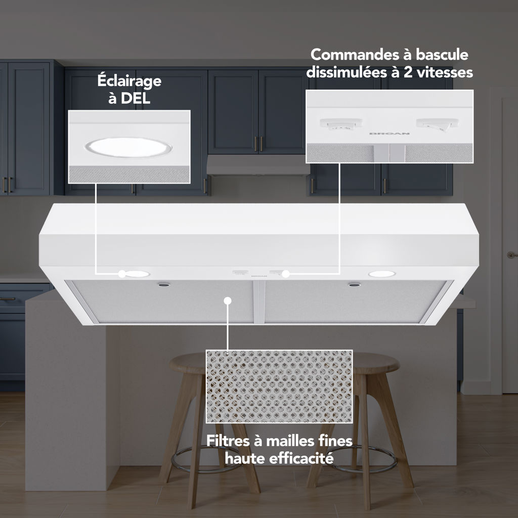 From the leader in residential indoor air quality, this under-cabinet range hood by Broan-NuTone is built to surpass industry standards with over 50 points of inspection, engineered as a reliable ventilation solution.
