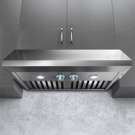 This range hood features a professional style, seamless corners, and a powerful 600 CFM high-airflow fan with 4 speed levels.