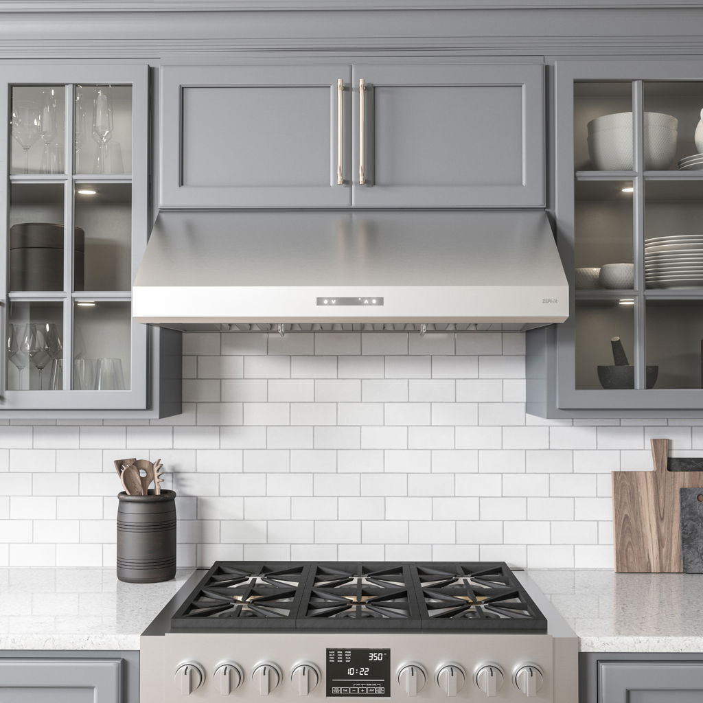 The professional-style Tidal I under-cabinet hood is the new wave of the future, featuring optional dual 1300 CFM PowerWave™ blowers and Zephyr Connect capabilities. Outfitted with professional baffle filters, LumiLight LED lighting, and 6-speed proximity touch controls, the Tidal I is the pinnacle of power and efficiency. Dual blower options are available on the 36" model.