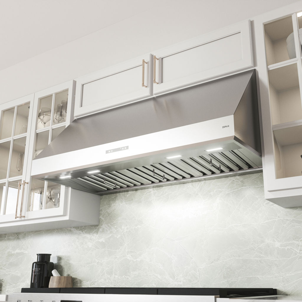 Designed for high-end professional kitchens, the Tidal II wall hood is equipped with a 700 CFM blower and an optional 1300 CFM PowerWave™ dual blower, Zephyr Connect functionality, and professional baffle filters. At the forefront of technology, the Tidal II also features LumiLight LED lighting and 6-speed proximity touch controls.