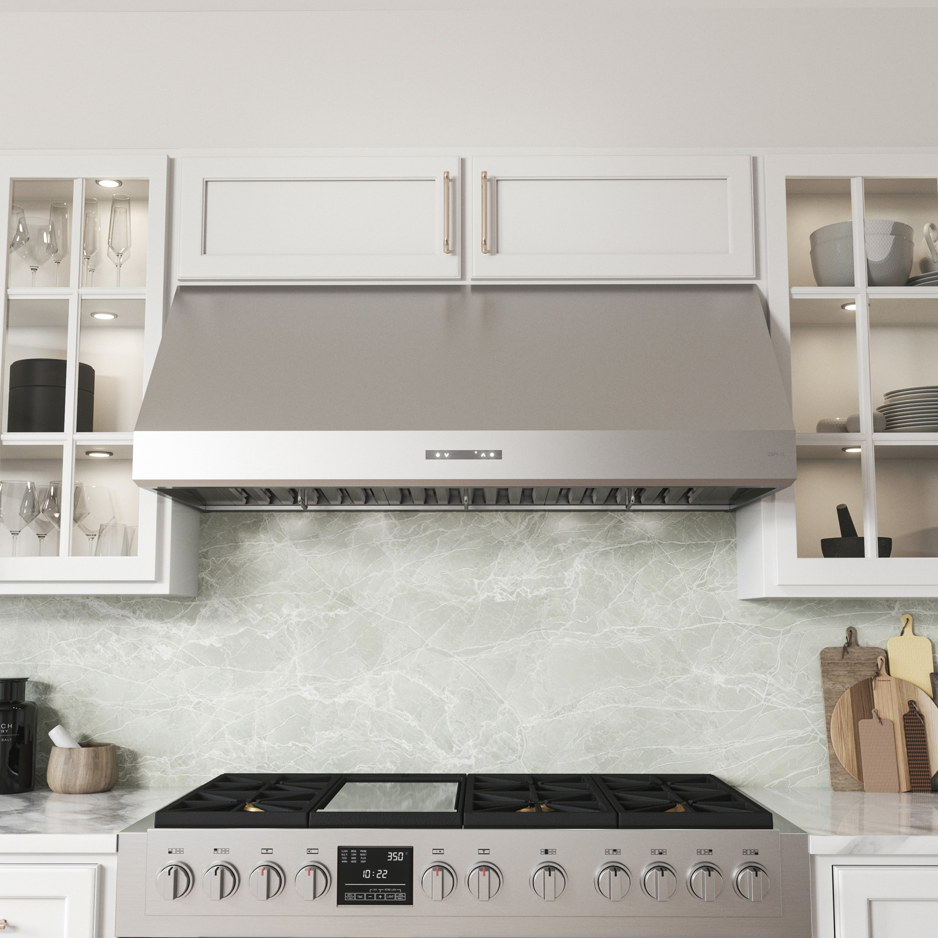 Control your hood from anywhere with your mobile device using the Zephyr Connect app. Access real-time diagnostics and product information, and connect with smart devices such as Amazon Alexa or Google Home speakers. Download the app today from the Apple App Store or Google Play.