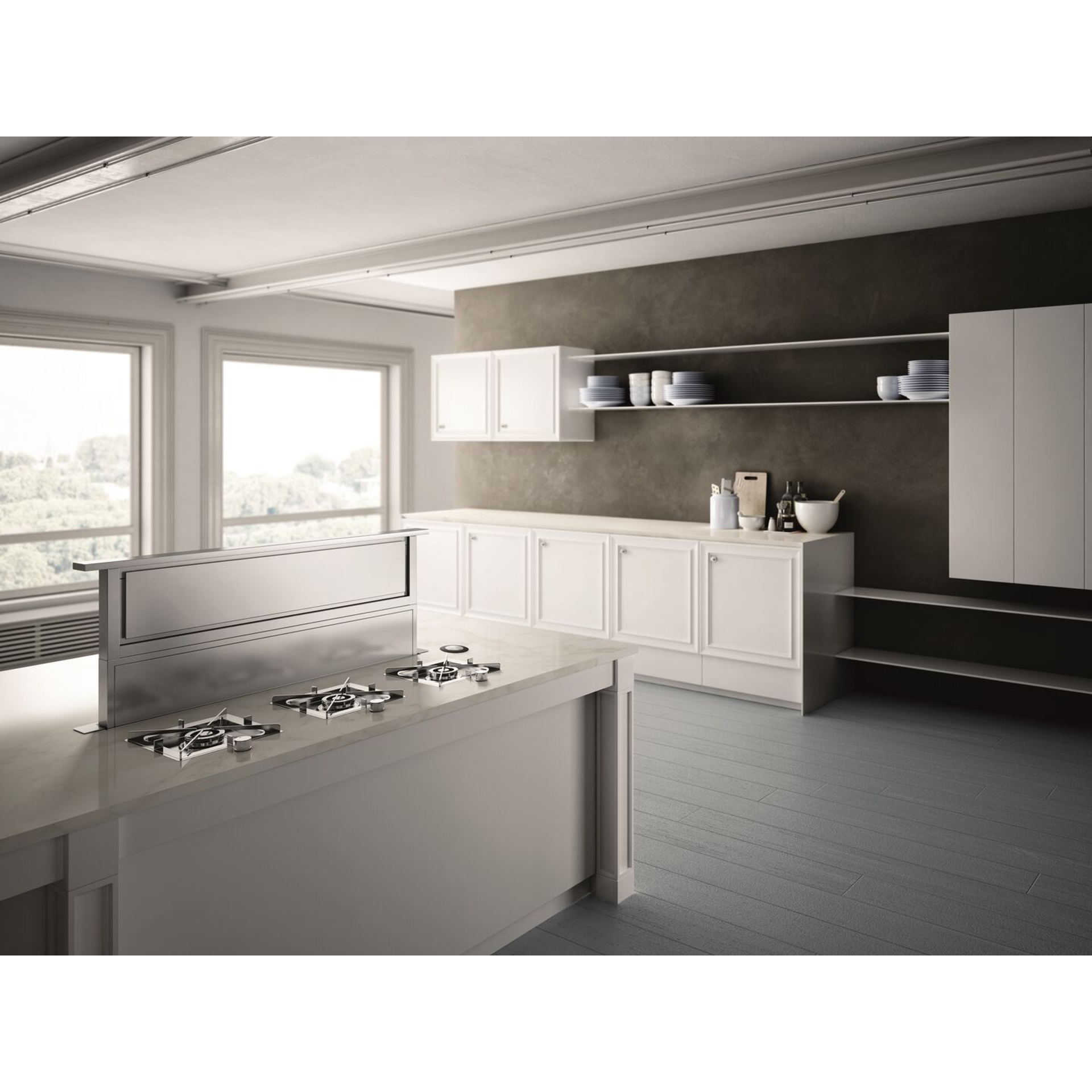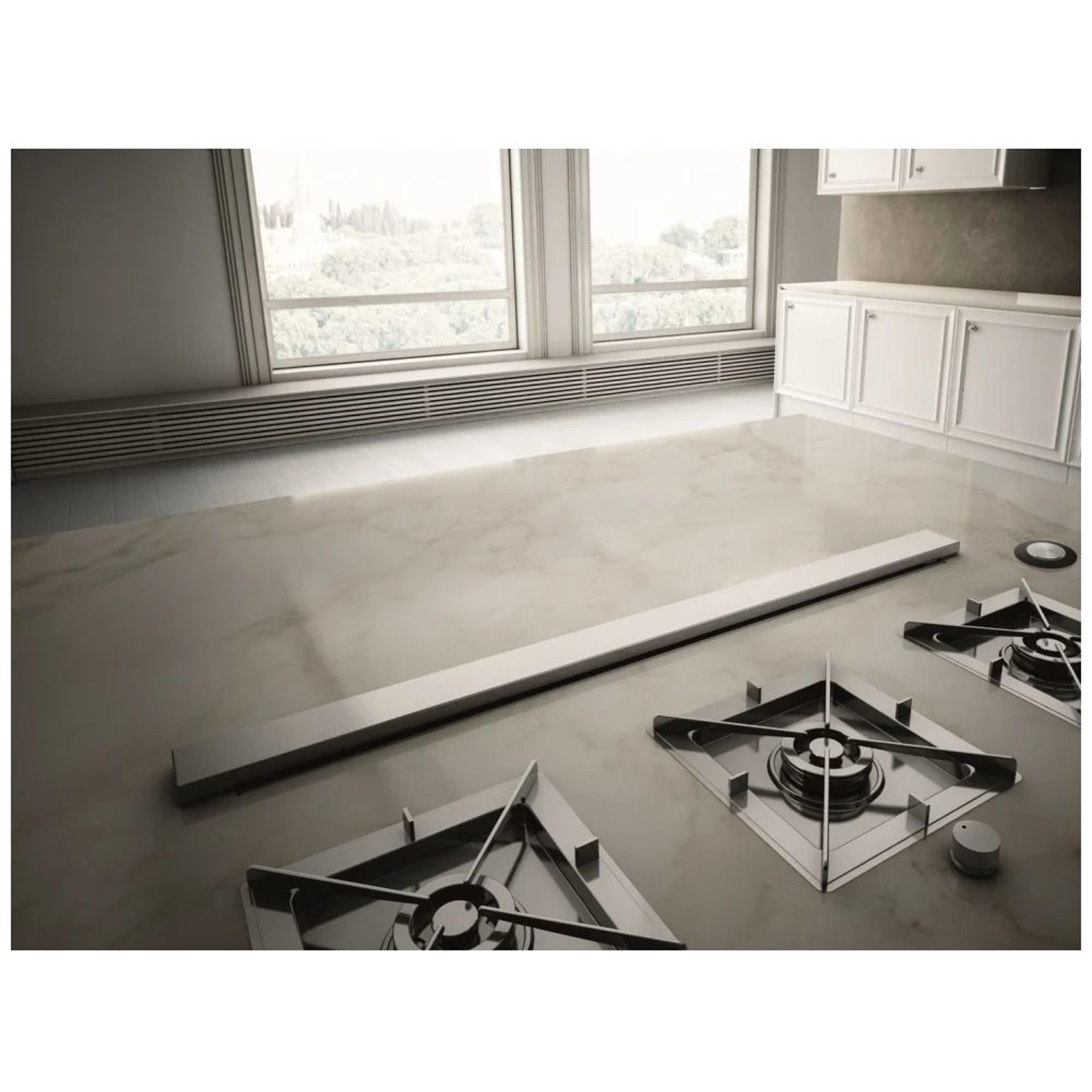 When the view out your kitchen window is too spectacular to disrupt with a range hood, Elica's Rise is the perfect solution. Rise recesses completely out-of-sight into the countertop (when not in use), but when it's time to cook, Rise elevates a full 14" above the countertop (almost twice the height of competitors), for added ventilating efficiency.