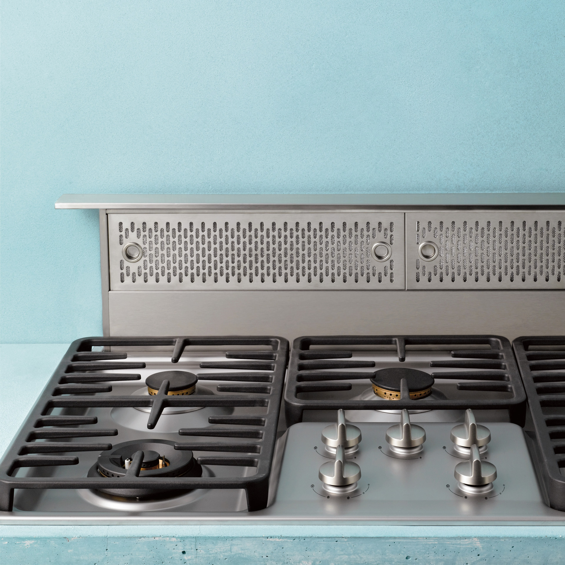 Ideal for small kitchens or for island settings where ceilings are too high for ducting, Sorrento rises to the occasion. The brushed stainless steel filter unit houses quiet, efficient centrifugal blowers. An automatic heat sensor adjusts blowers in high-heat conditions. The press of a button lets you conveniently raise and lower this hood.