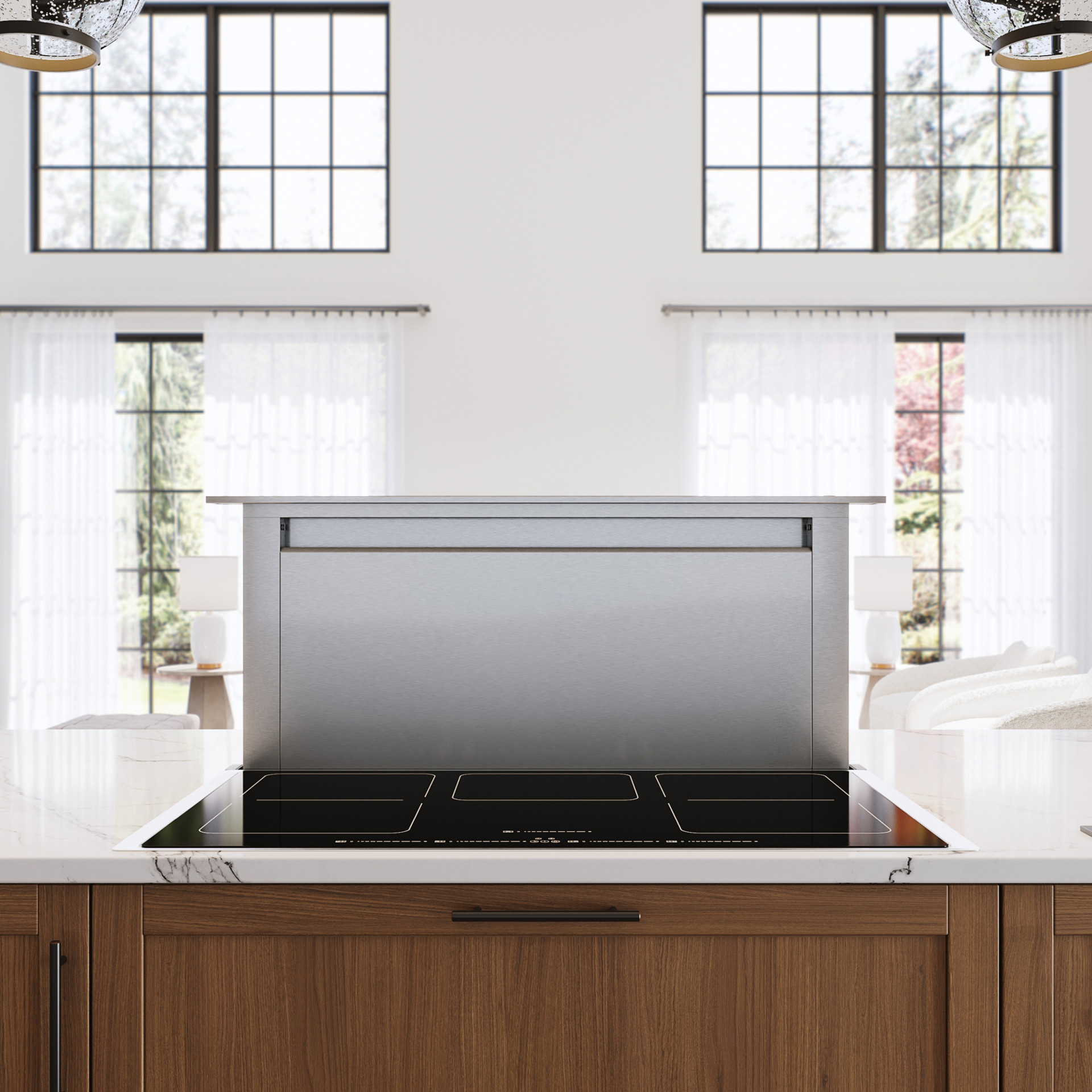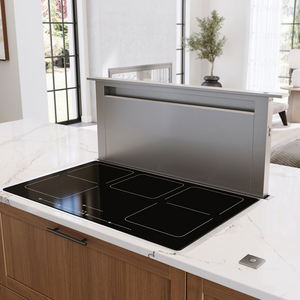 The Treviso Downdraft is chic, simple, and simply spectacular. Invisible when not in use, it integrates seamlessly into the highly sought-after open kitchen designs. This concealed all-in-one upward extraction system offers everything you need without anything unnecessary. Its sleek and efficient panel makes it a stylish solution that fits into nearly any kitchen.