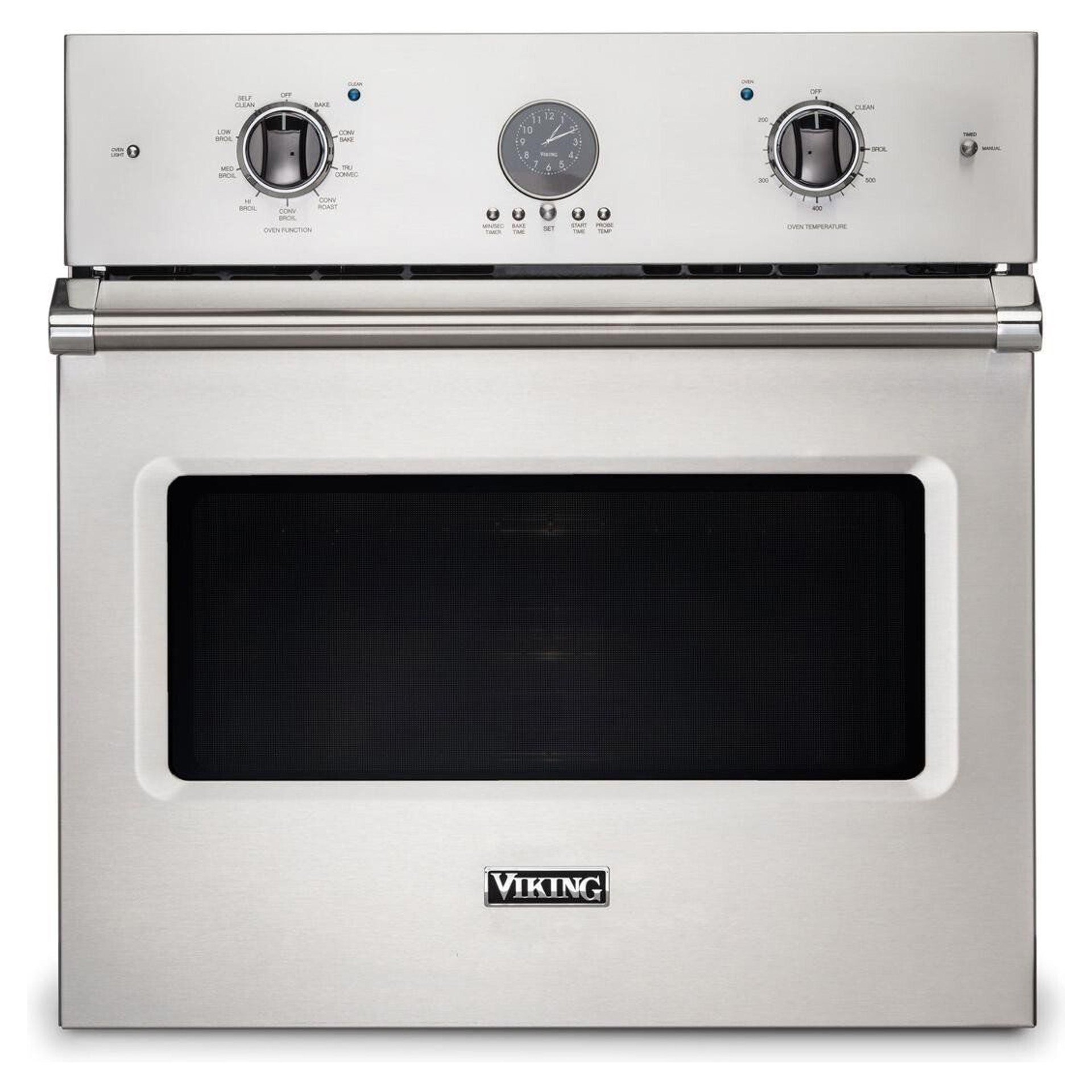 This thermal convection electric oven from Viking includes 2 full-extension TruGlide racks, a digital clock, a meat probe and a self-cleaning function.