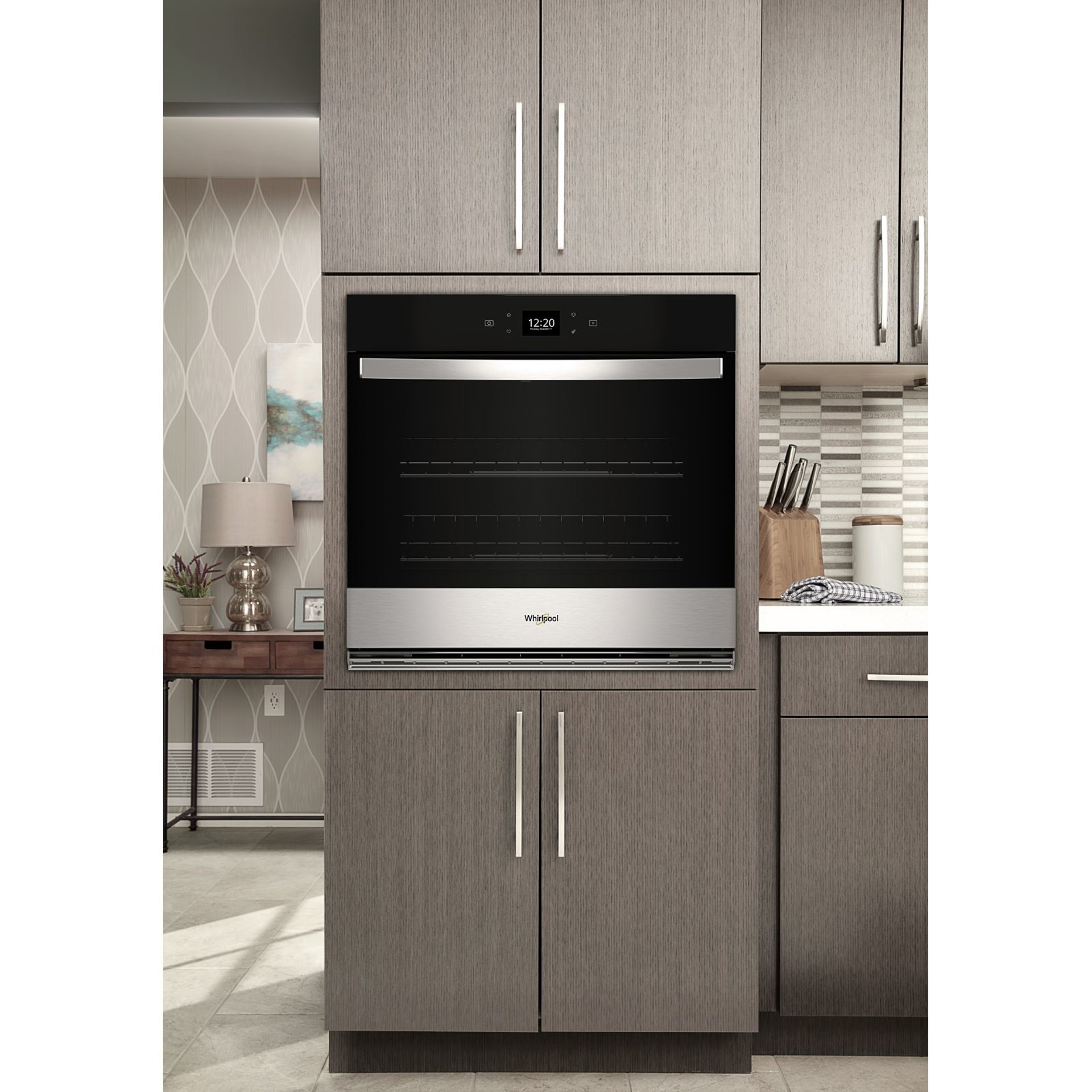 This Whirlpool wall oven is built for multitasking to take on any meal. Fan Convection Cooking and Frozen Bake™ Technology let you get dishes to the table more quickly, while Assisted Cooking takes the guesswork out of choosing the ideal time and temperature settings. Thanks to an adjustable self-clean cycle, you can ensure a sparkling oven interior after each meal without any scrubbing. This Whirlpool appliance is also equipped with smart capabilities so you can control, set, monitor and download feature updates like Air Fry from any smart device via the Whirlpool app.
