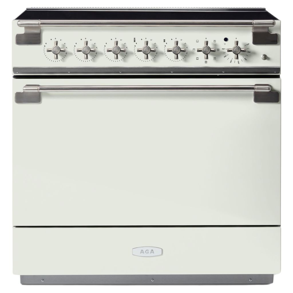 The 36” AGA Elise induction range features a large multi-function oven with seven settings, including European double convection cooking, fan-assisted cooking, browning, defrosting and serving, convection grilling, reheating and conventional cooking.