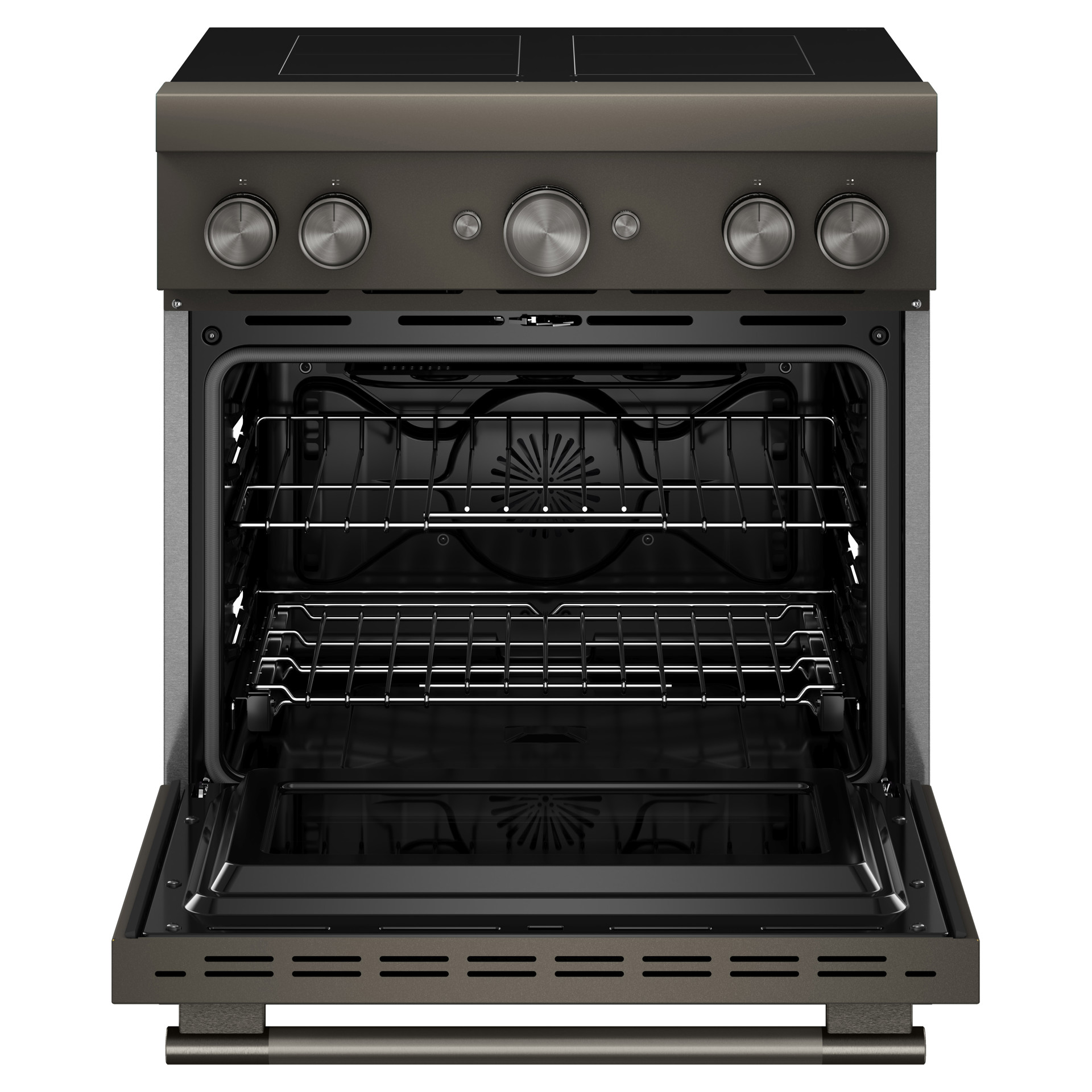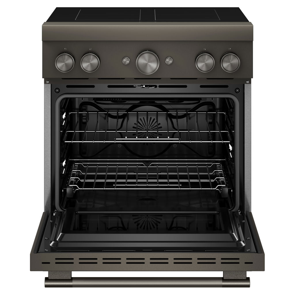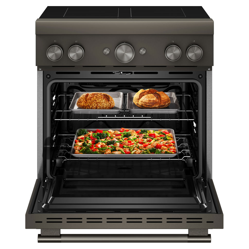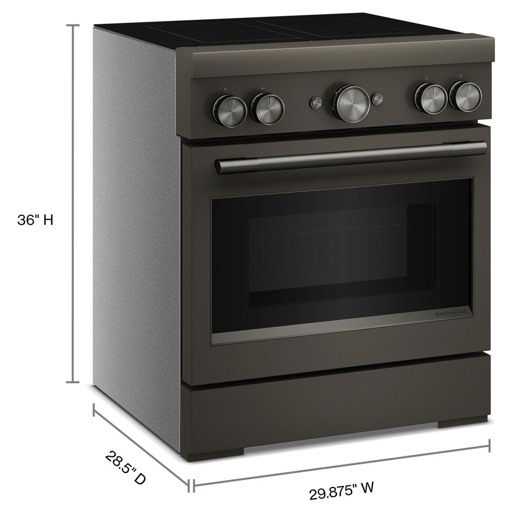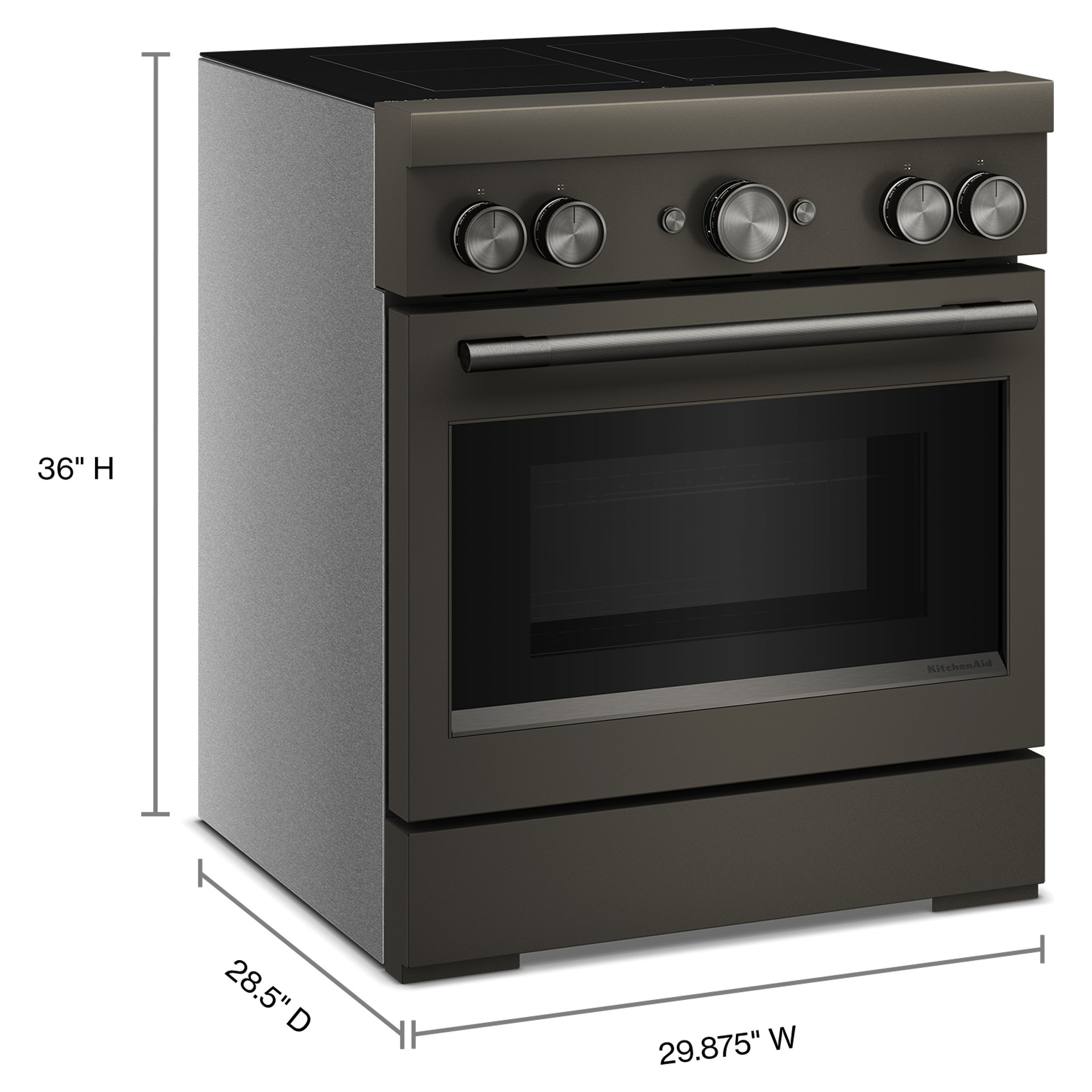 This 30-inch KitchenAid® Slide-In Induction Range in stainless steel combines the precision of induction cooking with the power of convection and air frying, offering a 4.1 cu. ft. oven and four induction elements for exceptional versatility.
