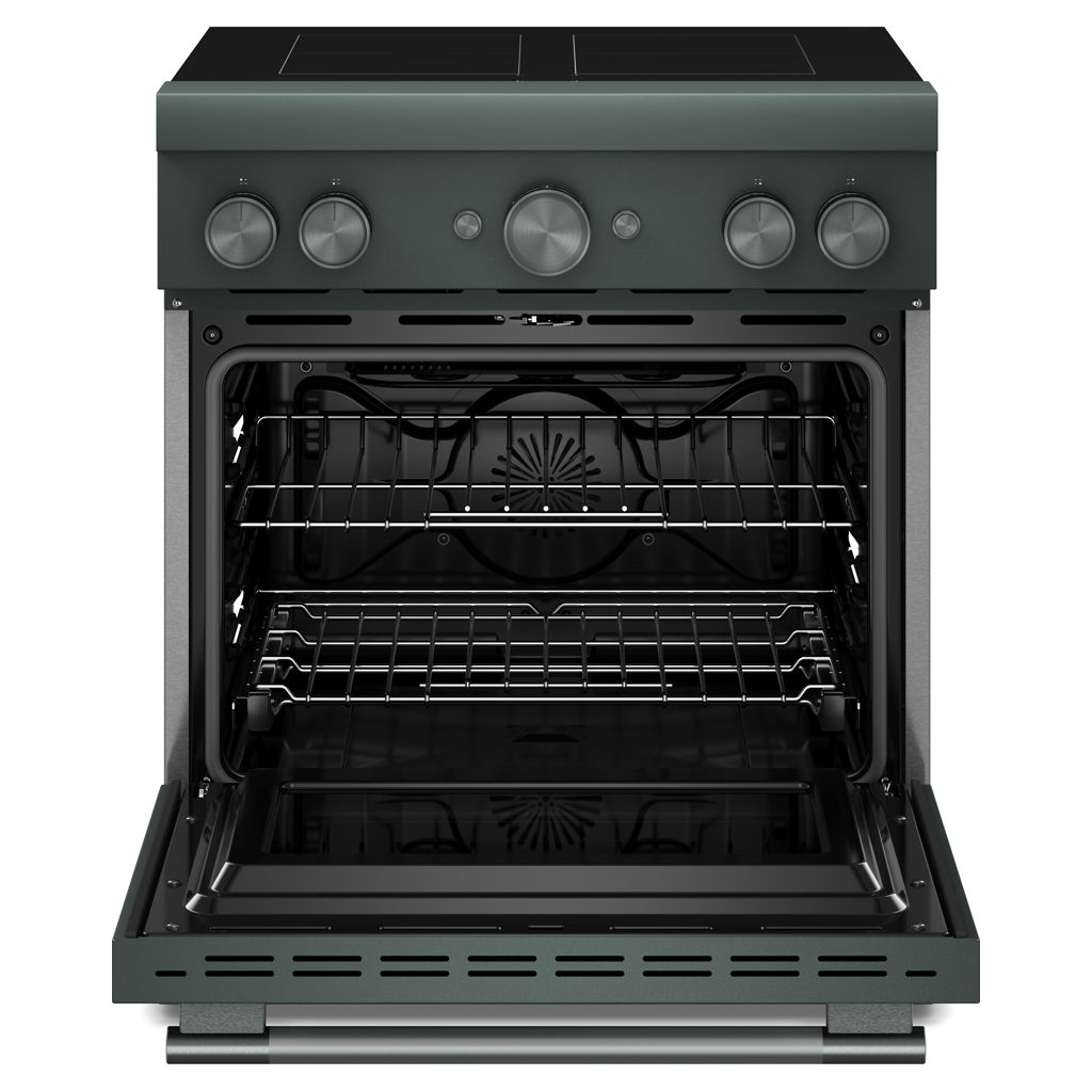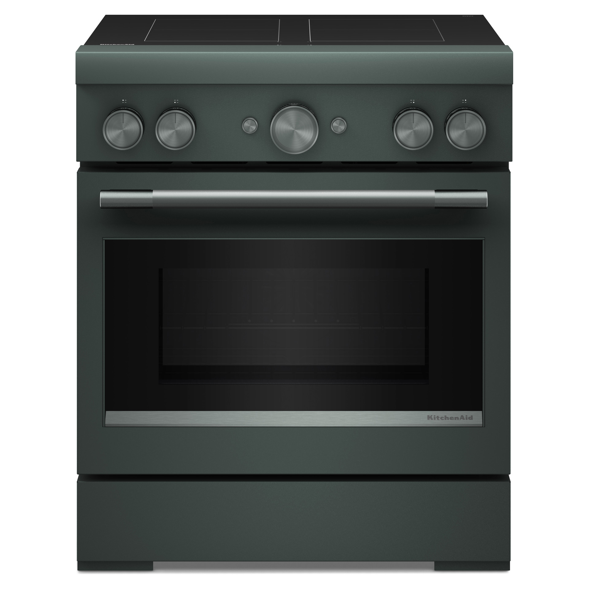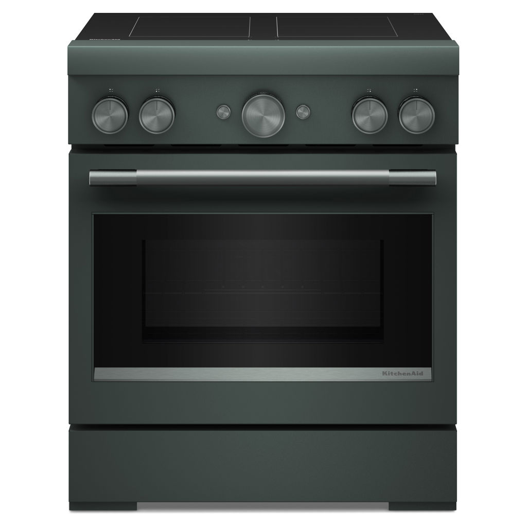 This 30-inch, 4.1 cu. ft. KitchenAid® slide-in induction range in stainless steel combines the precision of induction cooking with the power of air frying.