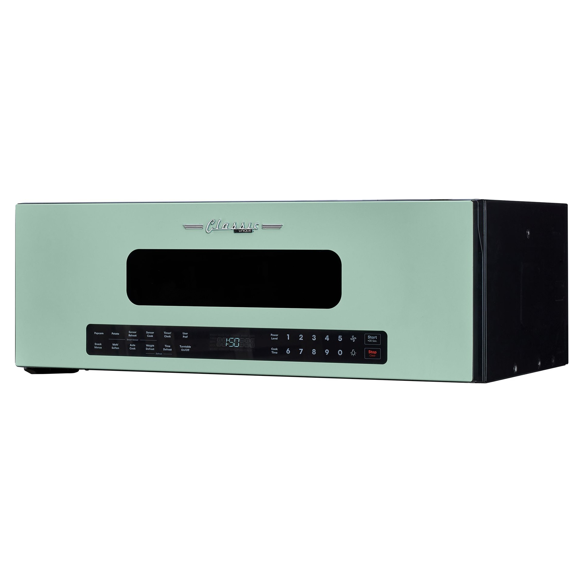 Unique Appliances Classic Retro 1.2 cu ft over-the-range microwave is designed to maximize kitchen space with its stylish slim design.