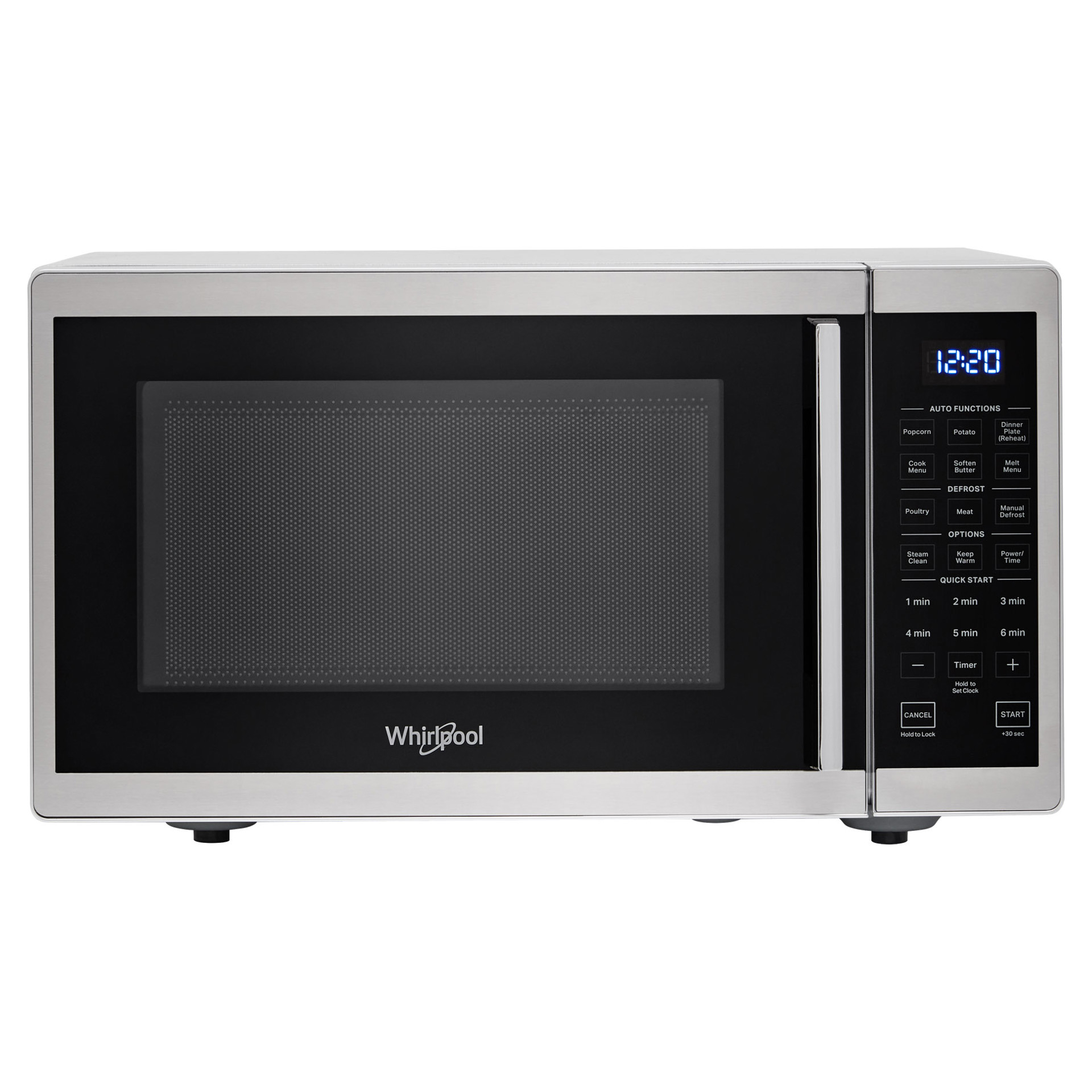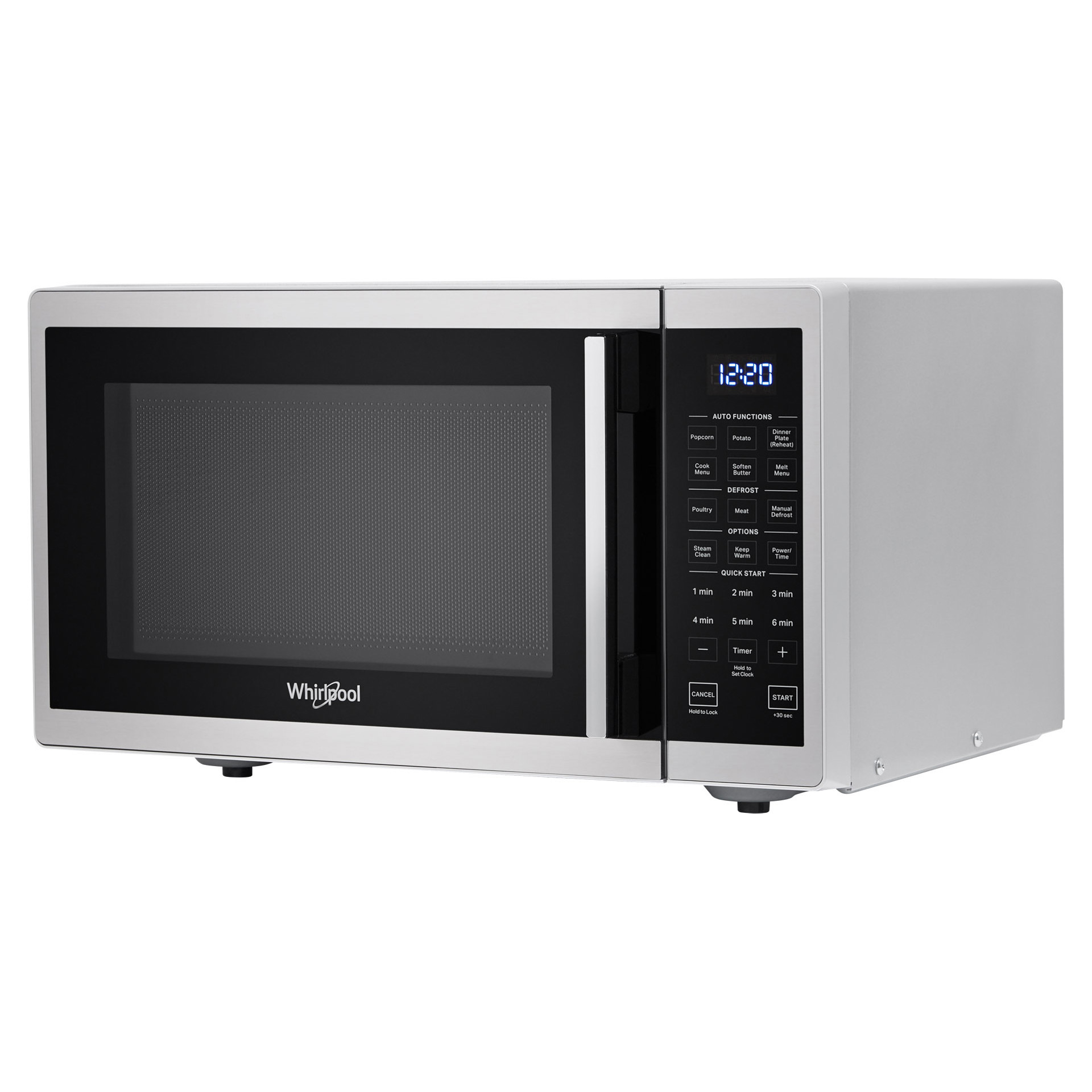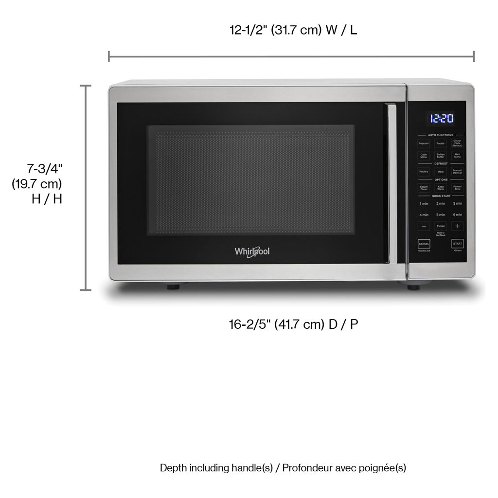 This Whirlpool® countertop microwave offers the space and speed you need for everyday meals. Extend cooking time with the “Add 30 Seconds” option, keep dishes ready to serve with the “Keep Warm” function, and automatically prepare popcorn with the preset “Popcorn” program.