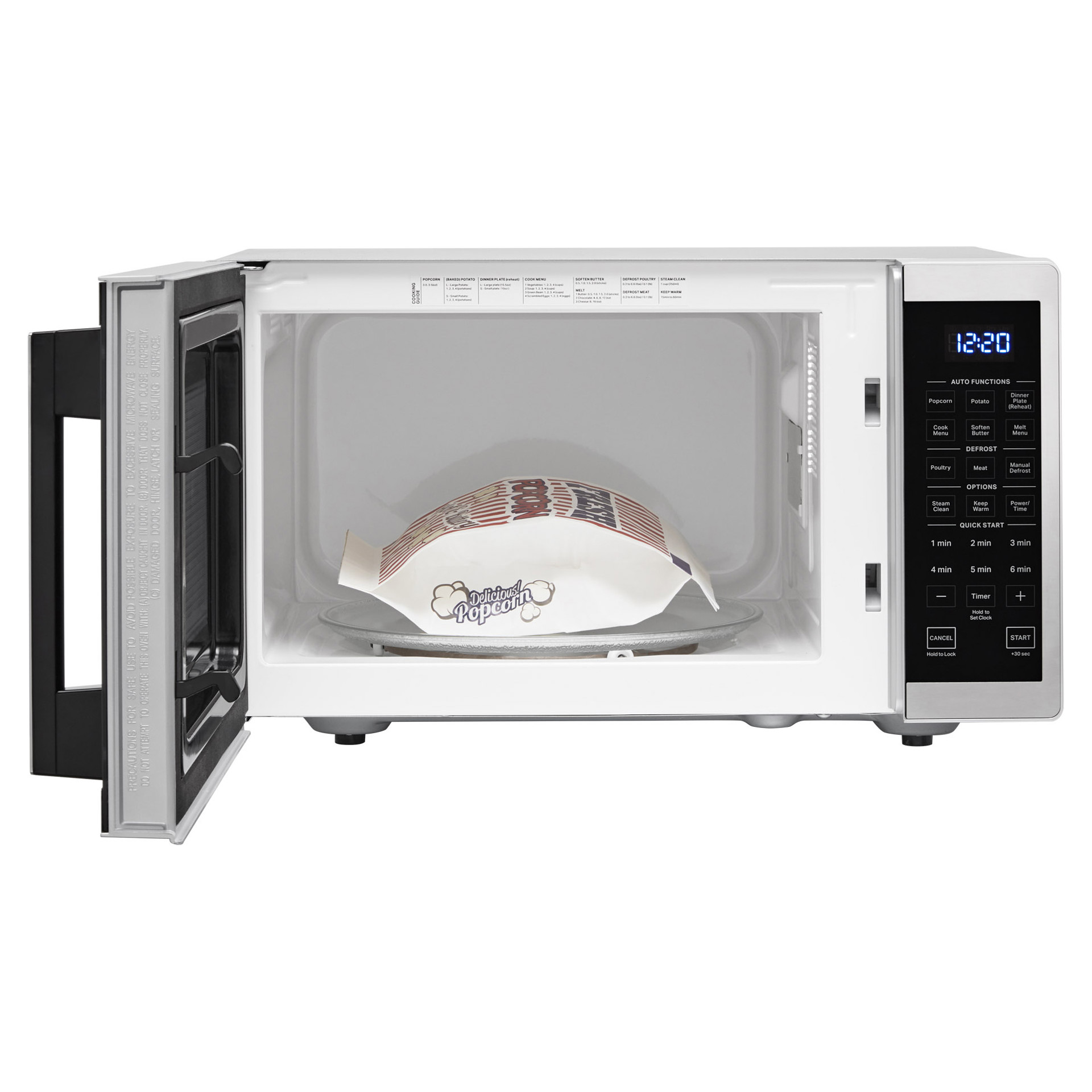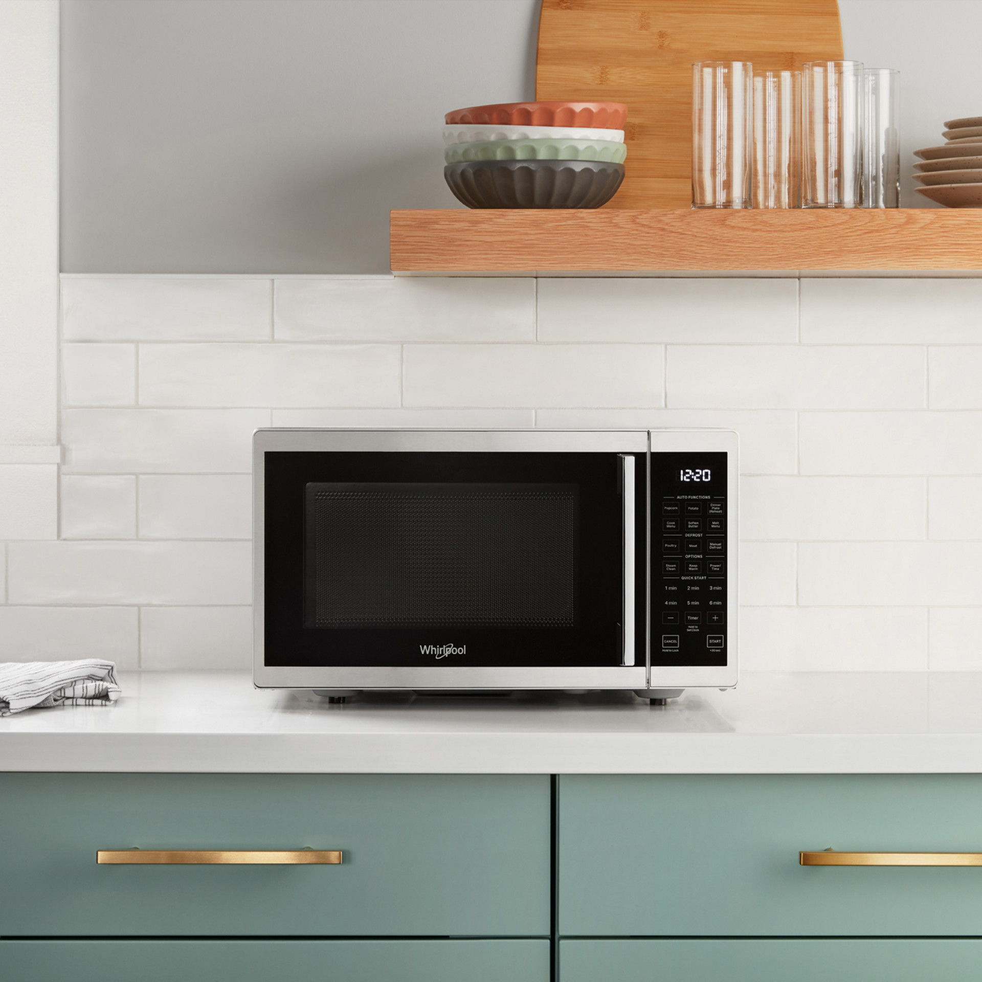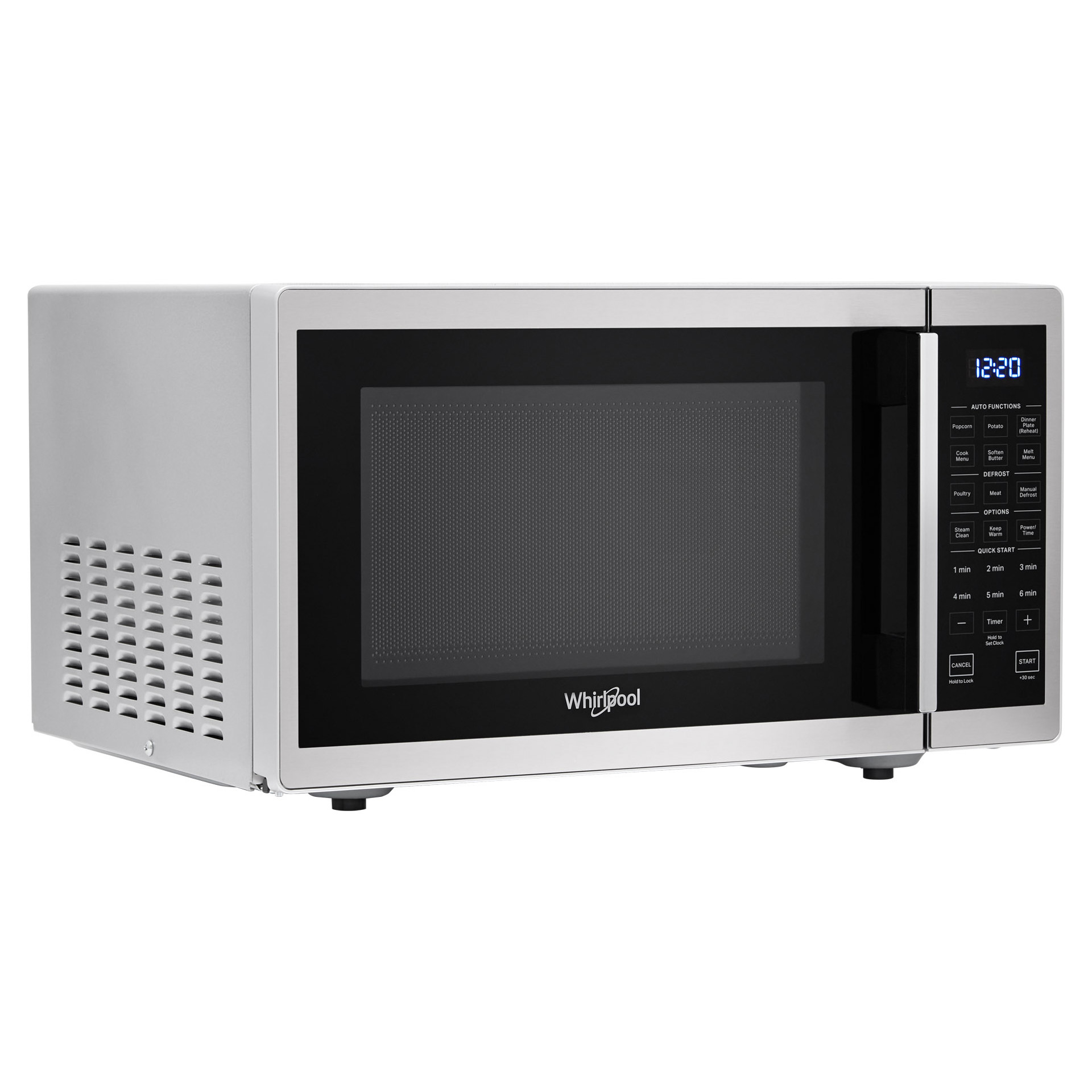 This Whirlpool® countertop microwave offers the space and speed you need for everyday meals. Extend cooking time with the “Add 30 Seconds” option, keep dishes ready to serve with the “Keep Warm” function, and automatically prepare popcorn with the preset “Popcorn” program.