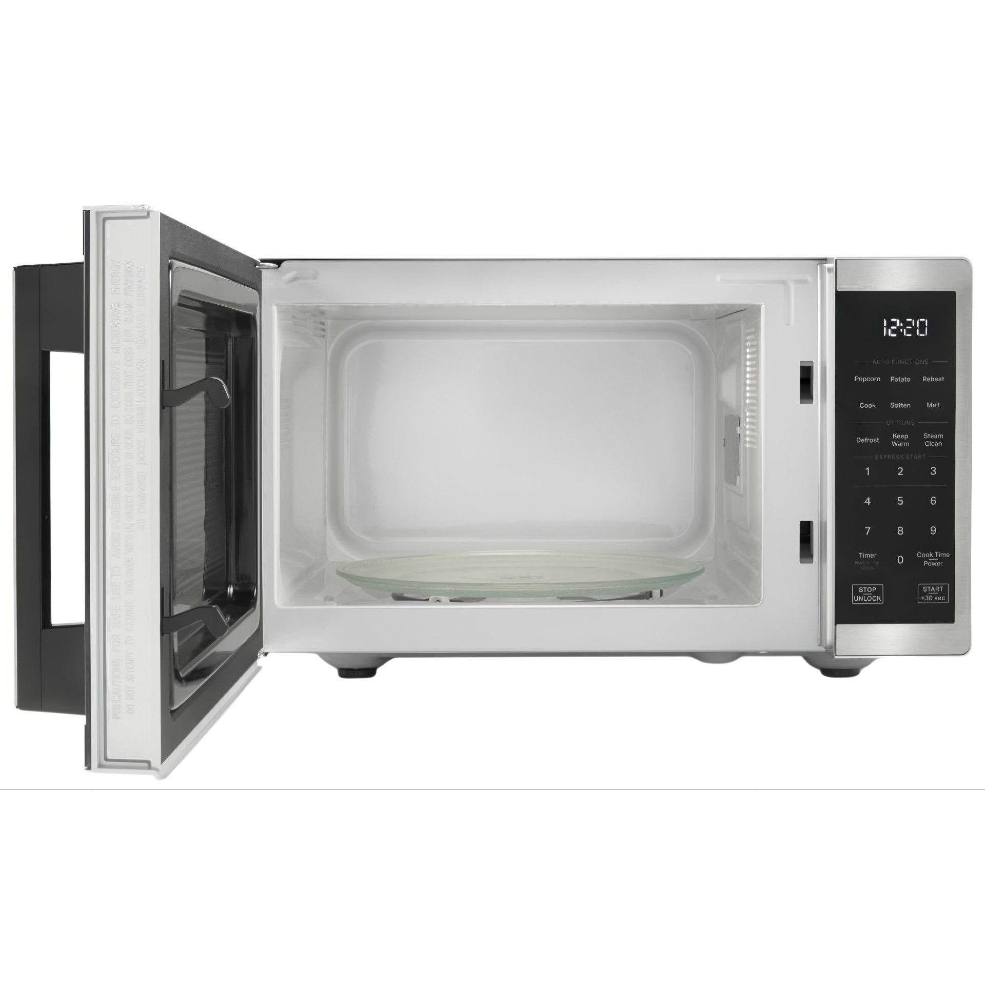 Easily clean up microwave spills with the removable dishwasher-safe turntable.