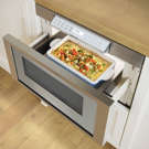 With its sleek, elegant design, the MicroDrawer® built-in microwave opens and closes with a simple push, eliminating the need for a handle.