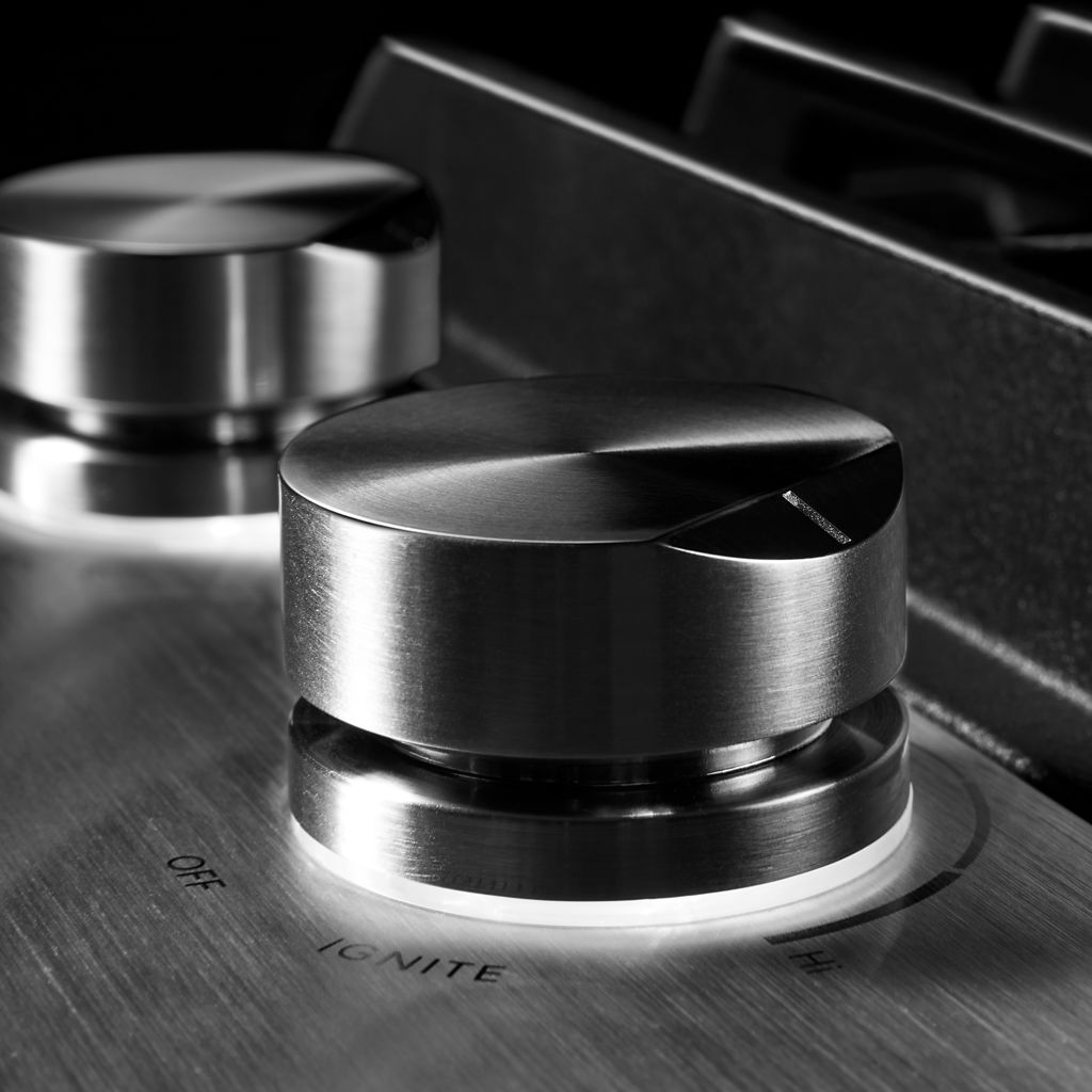 A white LED light illuminates below the entire knob when the burner is lit to enhance the high-end design.