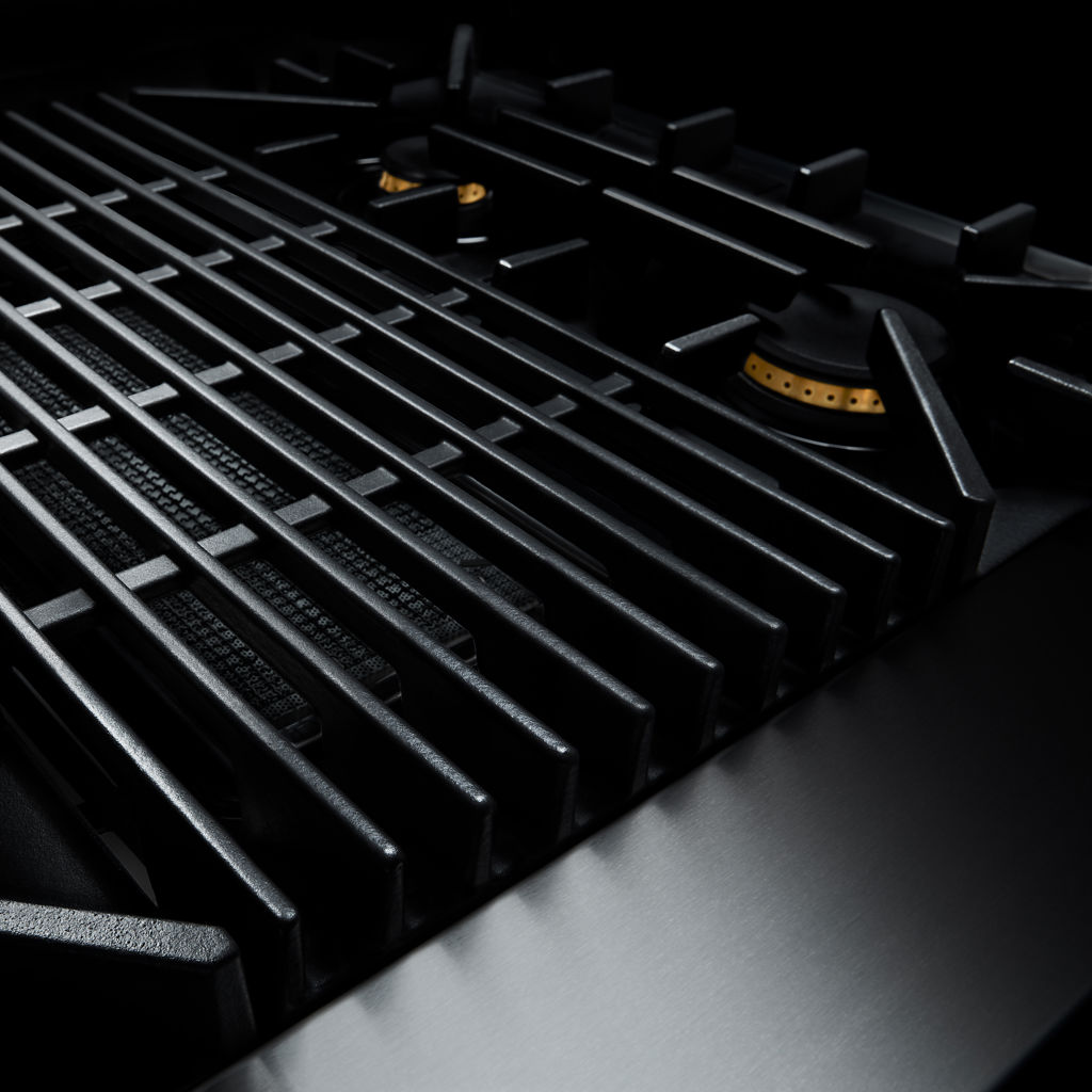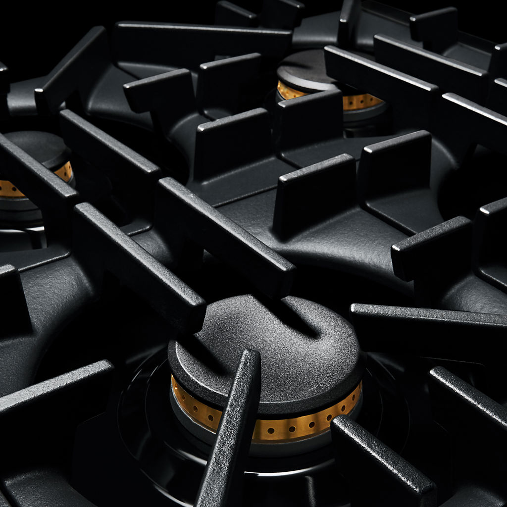 Sealed brass burners. Precise double flames. Incomparable firepower bursts through cast-iron grates. Light the fire without rattling, then sear and simmer to satisfy your hunger.