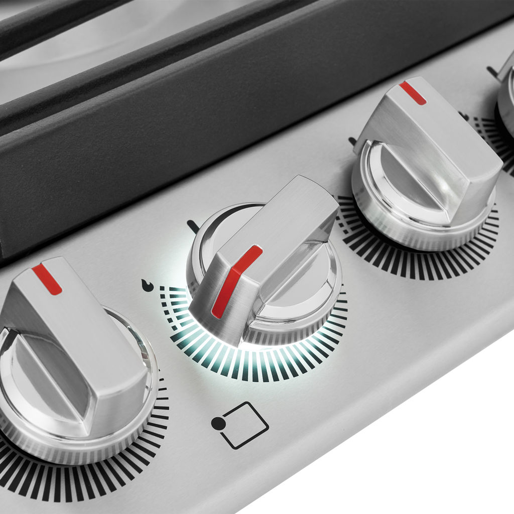 Enjoy faster, more powerful cooking with the 18,000 BTU burner. The backlit LED knobs illuminate when the cooktop is in use.