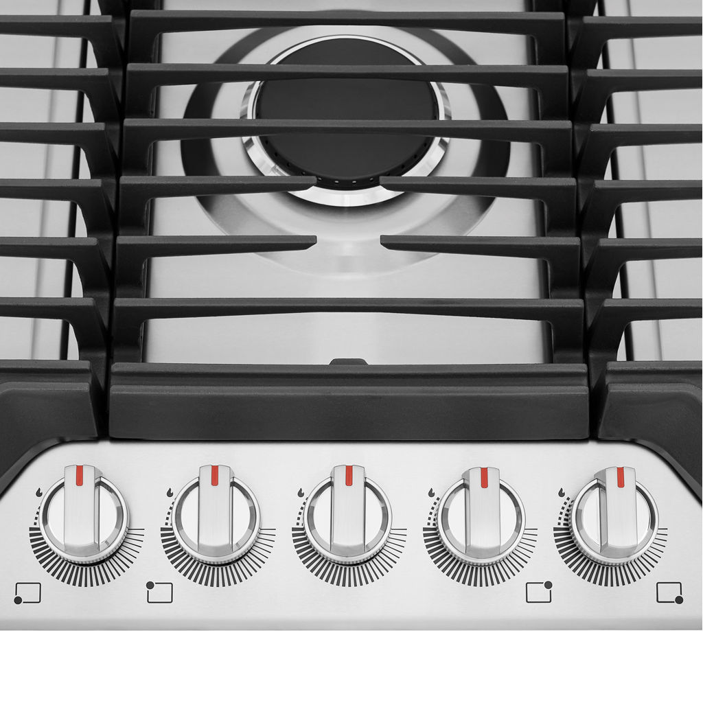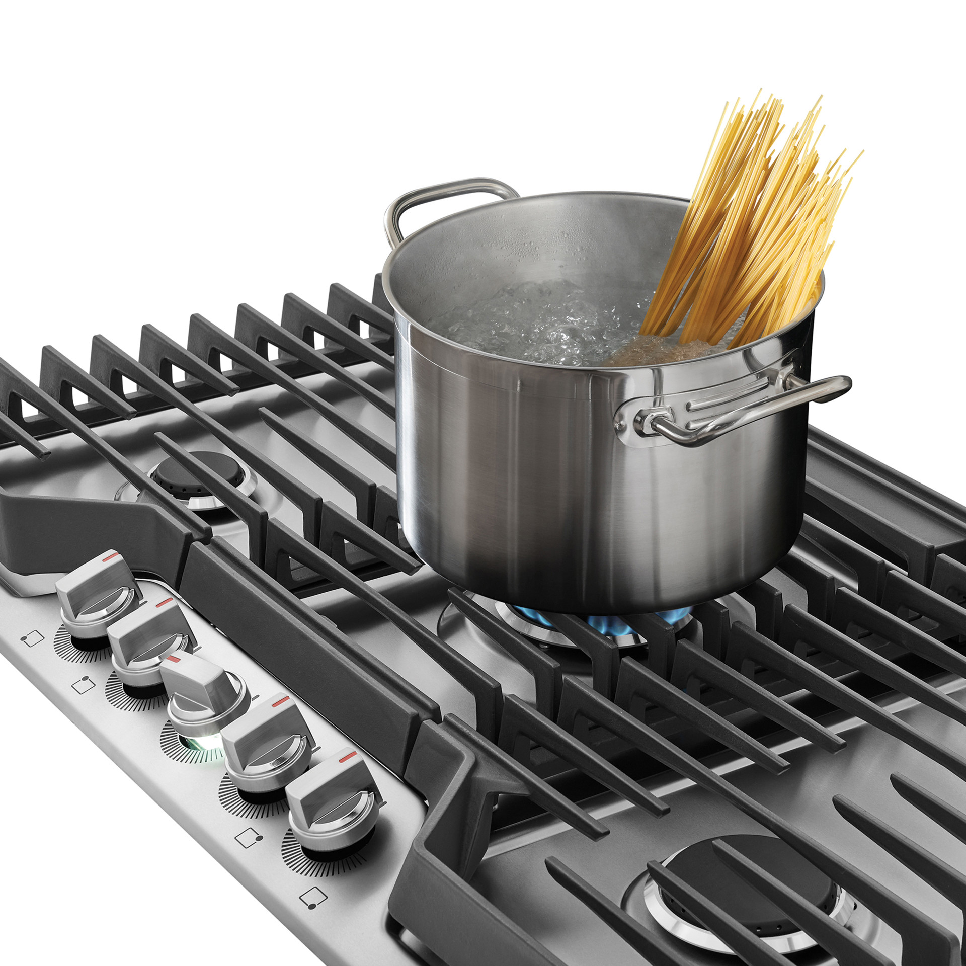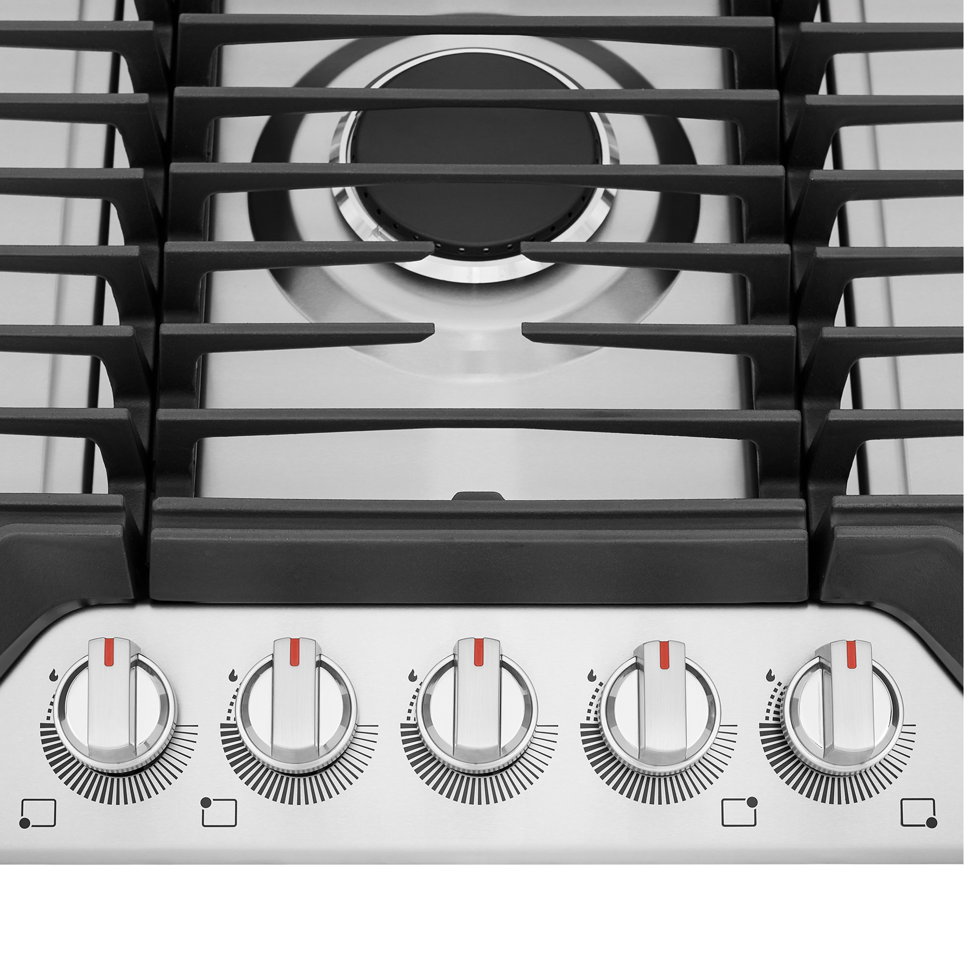 This cooktop features five burners designed to meet all your cooking needs, including a 5,000 BTU simmer burner ideal for delicate foods and a powerful 18,000 BTU Quick Boil burner that helps prepare meals faster.