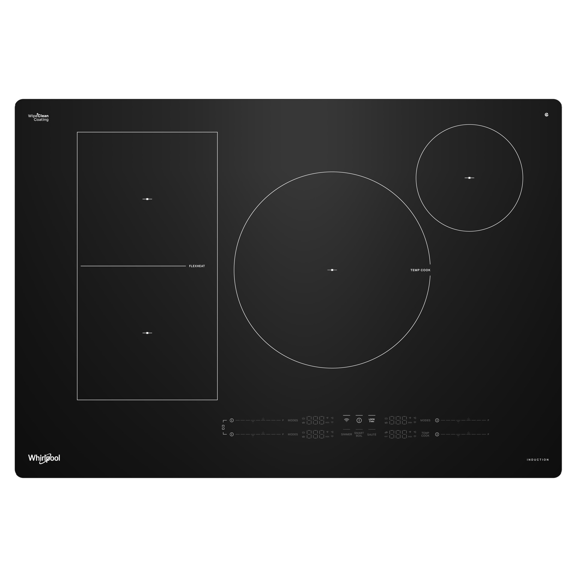 Skip scraping & intense scrubbing of baked-on foods with WIpeClean™ Coating, the easiest-to-clean induction cooktop coating.* Simply wet with water, wait, and wipe away. *When compared with cooktops with same heating technology with similar wattages.