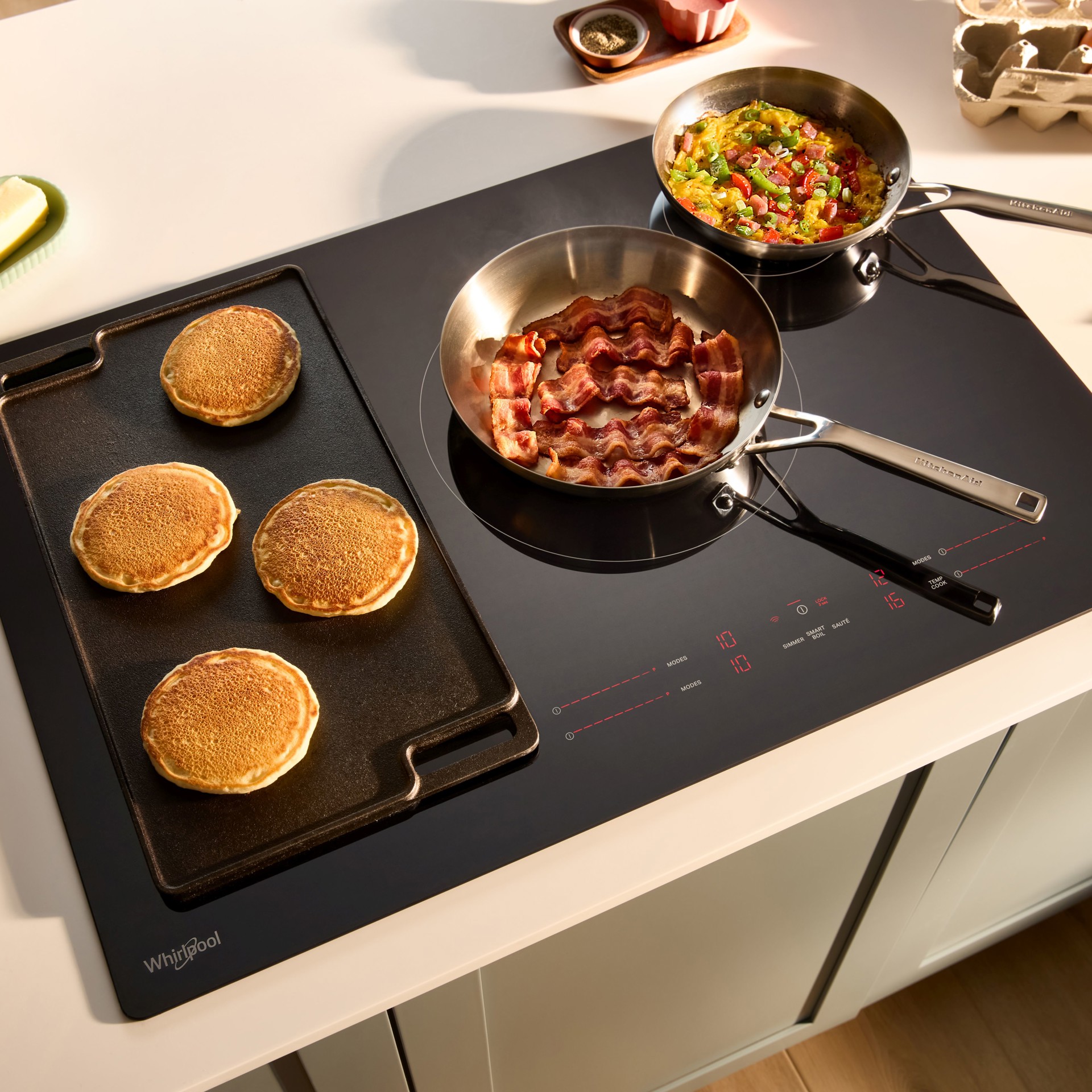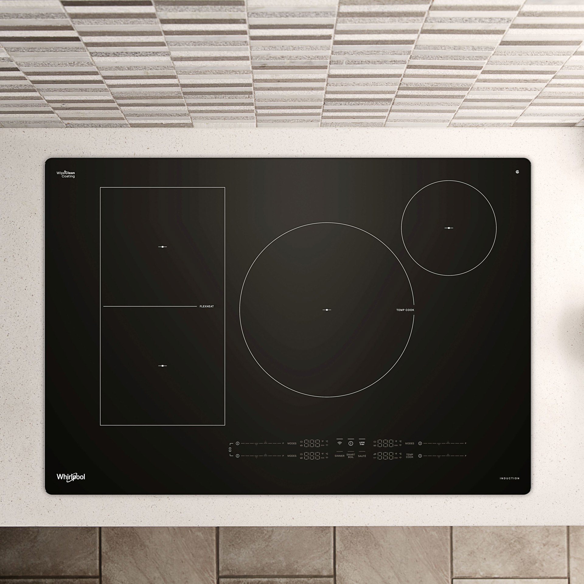 Use your voice to set your cooktop to specific cooking modes like Simmer, Fry, and more with Alexa™ or Google™ *. *When connected. Wifi and app required. See Whirlpool.com/connect for details. Alexa™ is a trademark of Amazon.com, Inc. of its affiliates