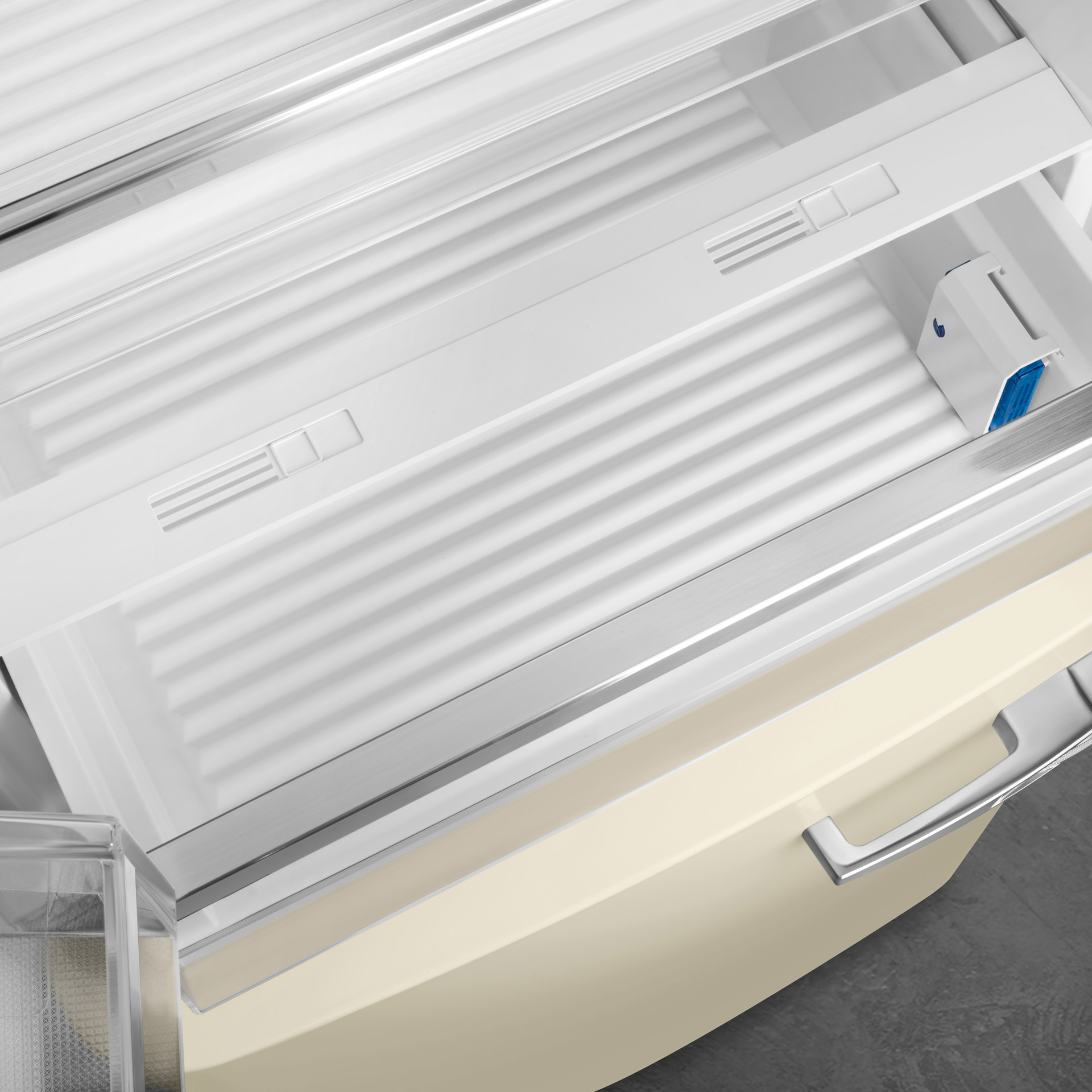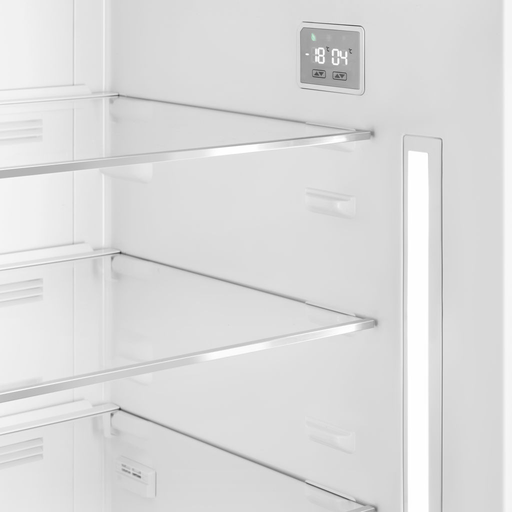 The retro-style 50's series has everything you're looking for in a refrigerator. The 16.2 cubic feet of total storage space offers more than enough room for fruits and vegetables, frozen foods, meats, dairy products, dry goods – any food that needs to be refrigerated or frozen. Adjustable glass shelves make it easy to organize your refrigerator as efficiently and neatly as possible.