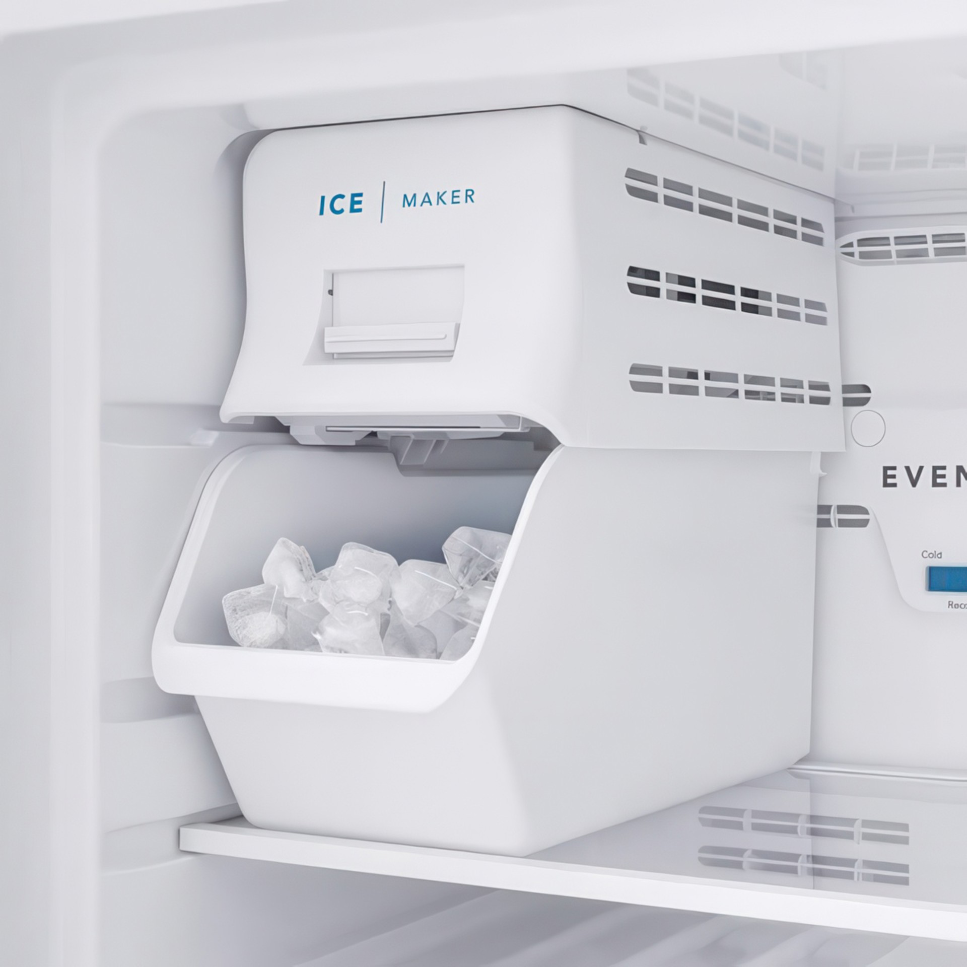 • Automatically produces and stores ice