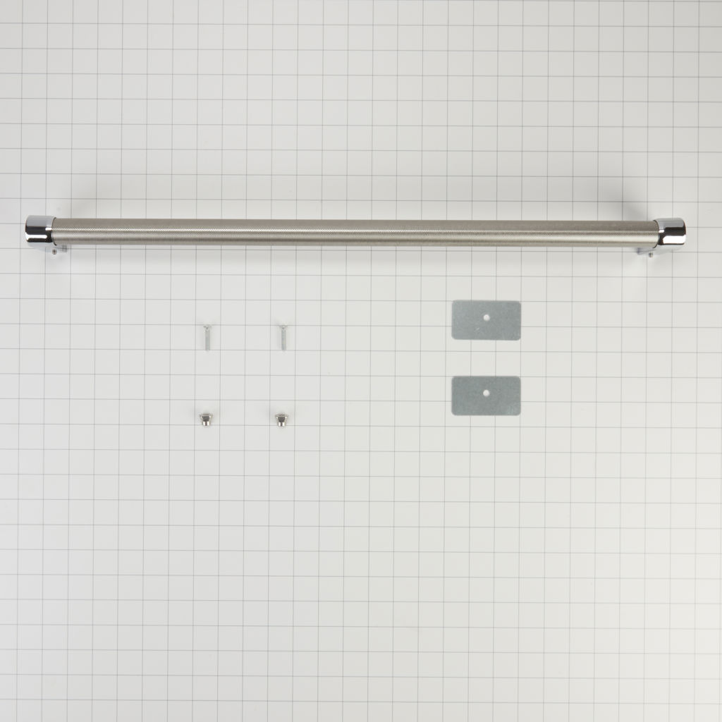 This stainless steel KitchenAid refrigerator handle kit lets you create a customized look for your refrigerator door. The sturdy bar-style handle, sleek chrome end caps, and easy-to-clean satin, cross-hatched texture combine high style with a secure grip.