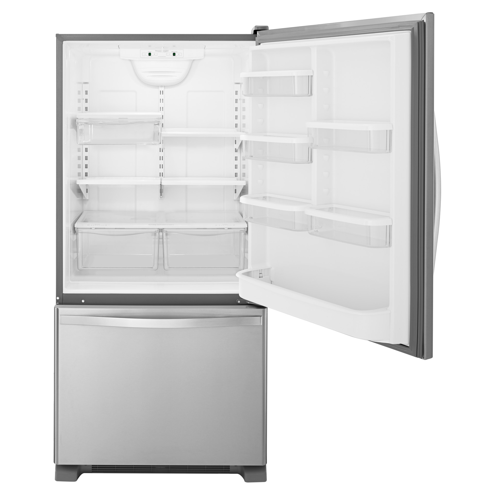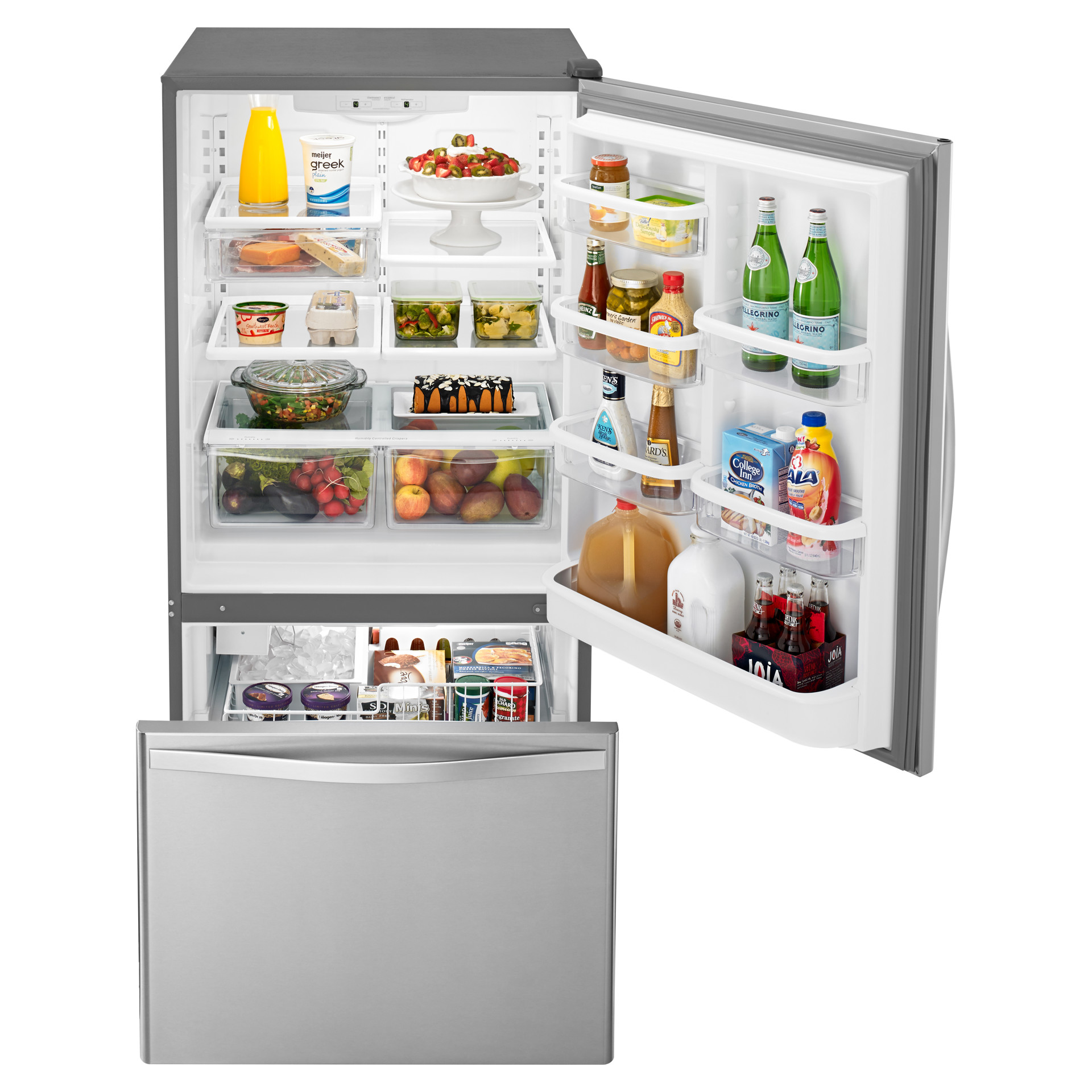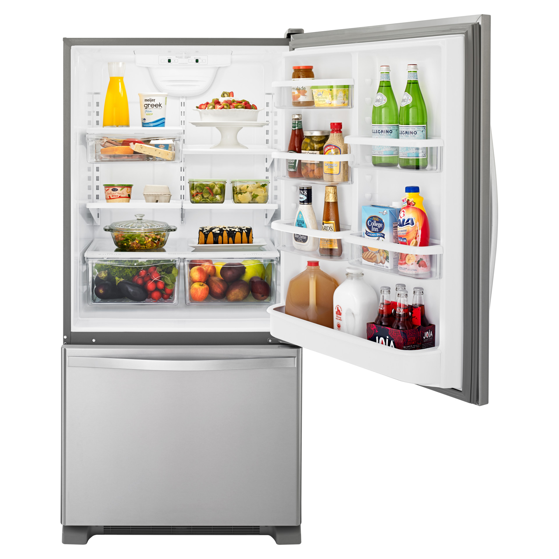 You can easily store all your fresh and frozen foods in this 22.1 cu ft bottom-freezer refrigerator. The freezer drawer keeps frozen foods close at hand, easy to organize and easy to find.