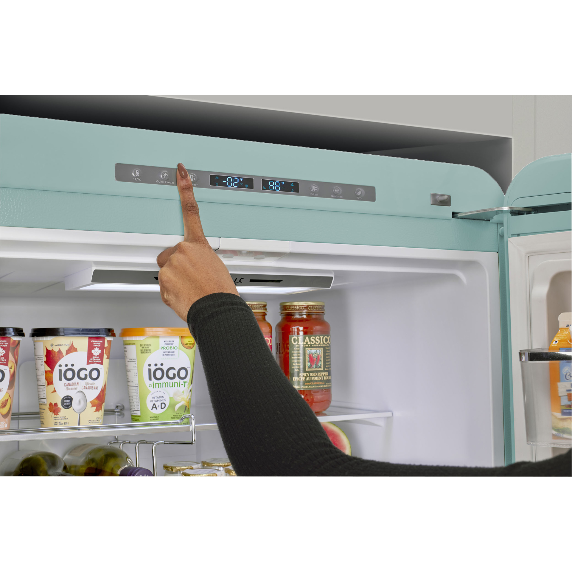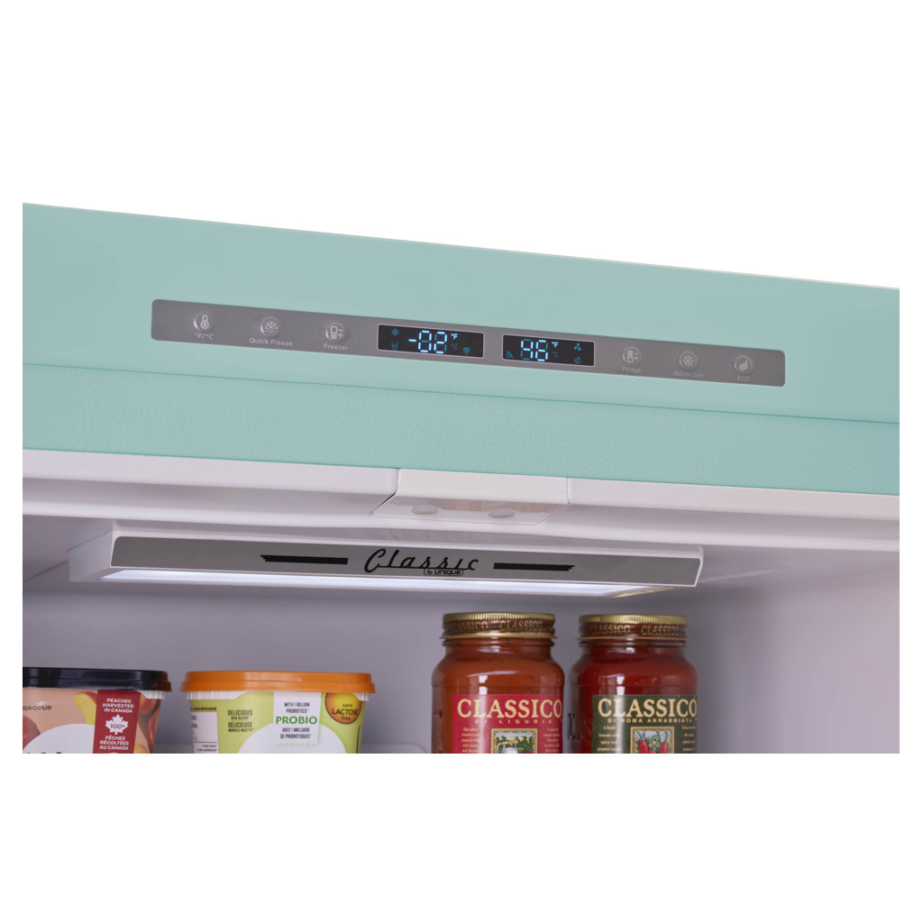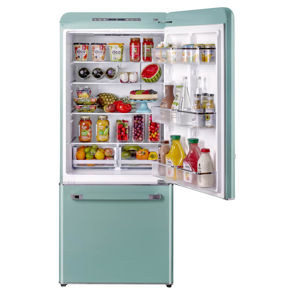 The 18 cu. ft. Classic Retro bottom mount refrigerator is the perfect family-sized refrigerator with ample space to keep all your fresh and frozen foods, packaged in an eye-catching throwback design. This refrigerator is ENERGY STAR Certified for energy efficiency all year-round, designed for optimal energy savings and easy, dependable use.