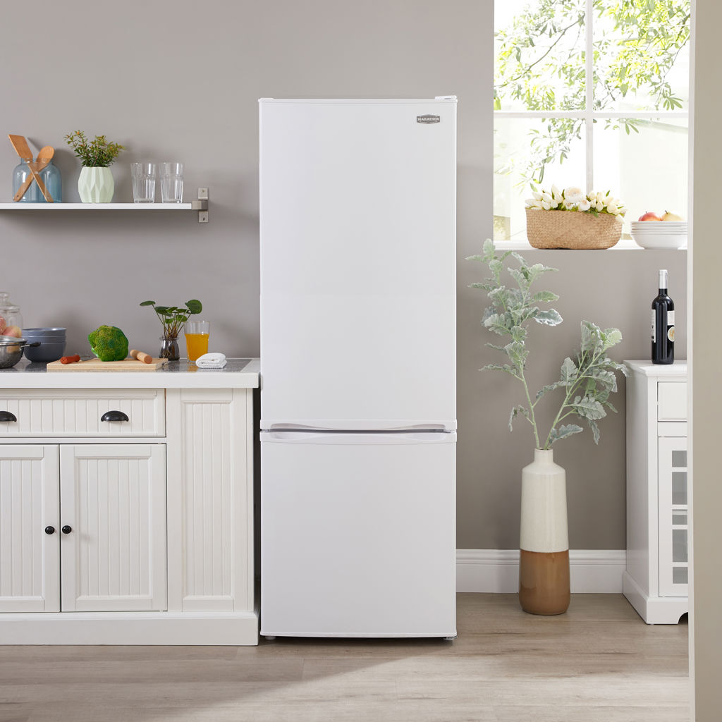 The Marathon 11.5 cu. ft. Deluxe White Multi-Air-Flow frost-free bottom-freezer refrigerator combines performance and style.