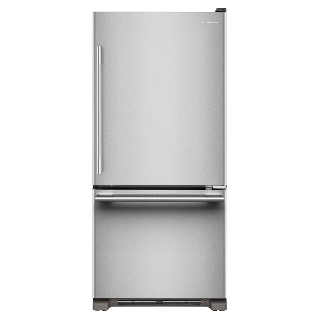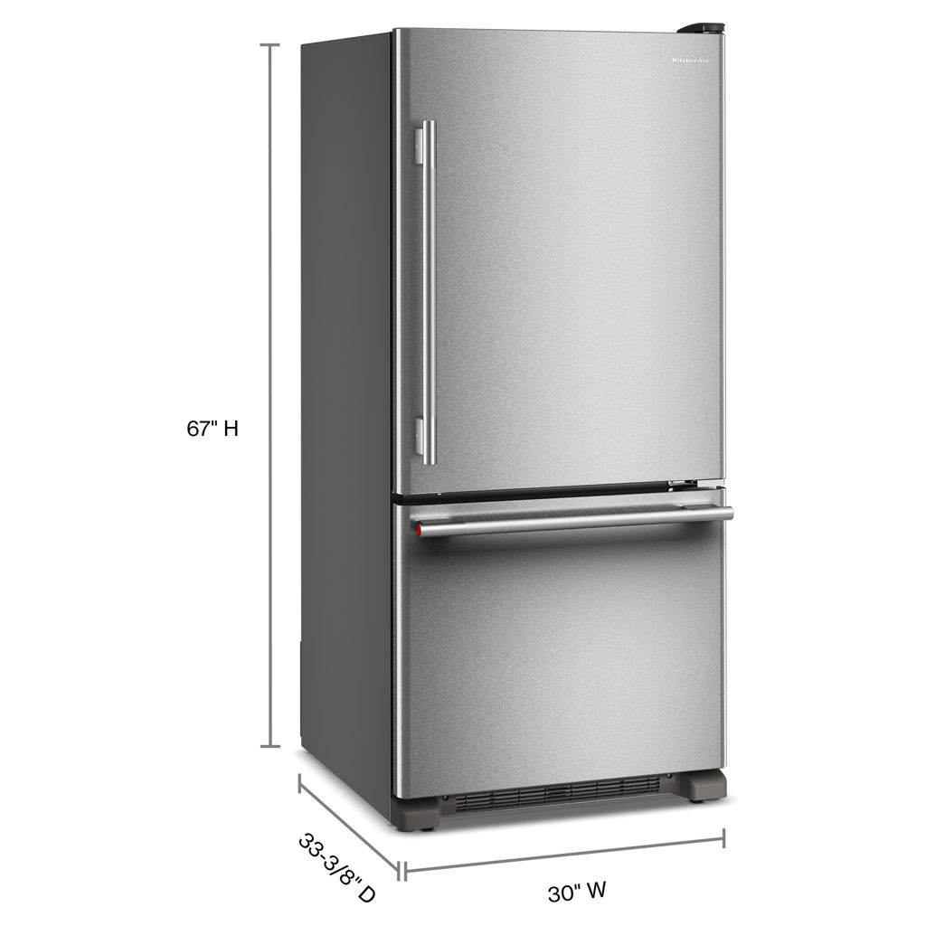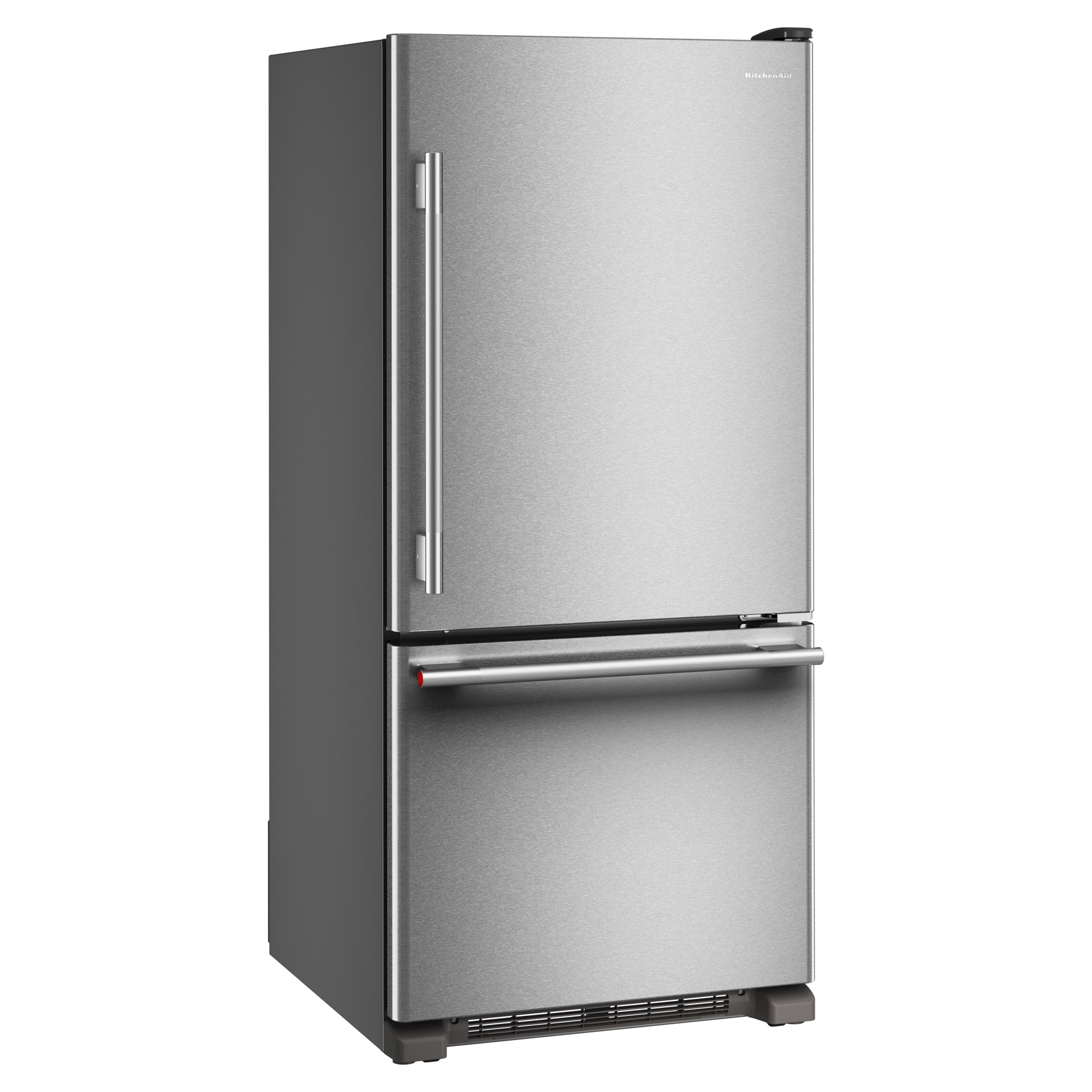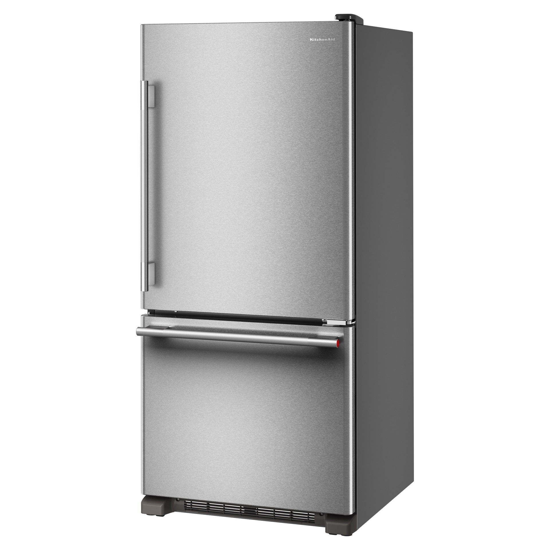 Freshness within easy reach. This KitchenAid® standard-depth bottom-freezer refrigerator features the Preserva® Food Care System to help keep your ingredients fresh and flavorful. Plus, the full-width pantry drawer lets you store large items with ease so you can free up space. All of this comes in a refrigerator equipped with ultra-bright LED lighting and adjustable, framed spill-proof shelves with metallic accents.