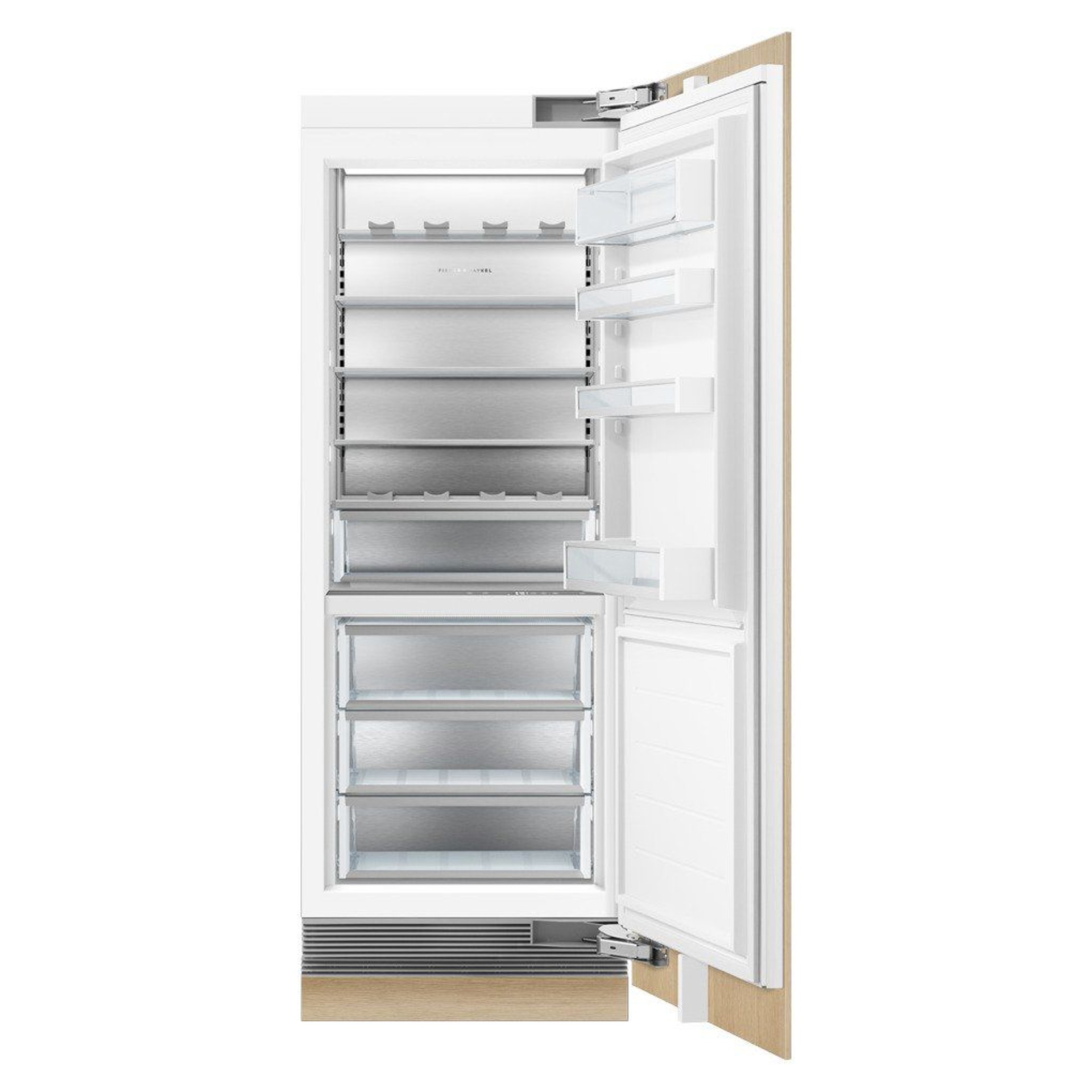This Fisher & Paykel built-in column refrigerator features a straight hinge with a stainless steel interior. It can be installed separately or with a built-in column refrigerator in a variety of sizes for true design freedom.
