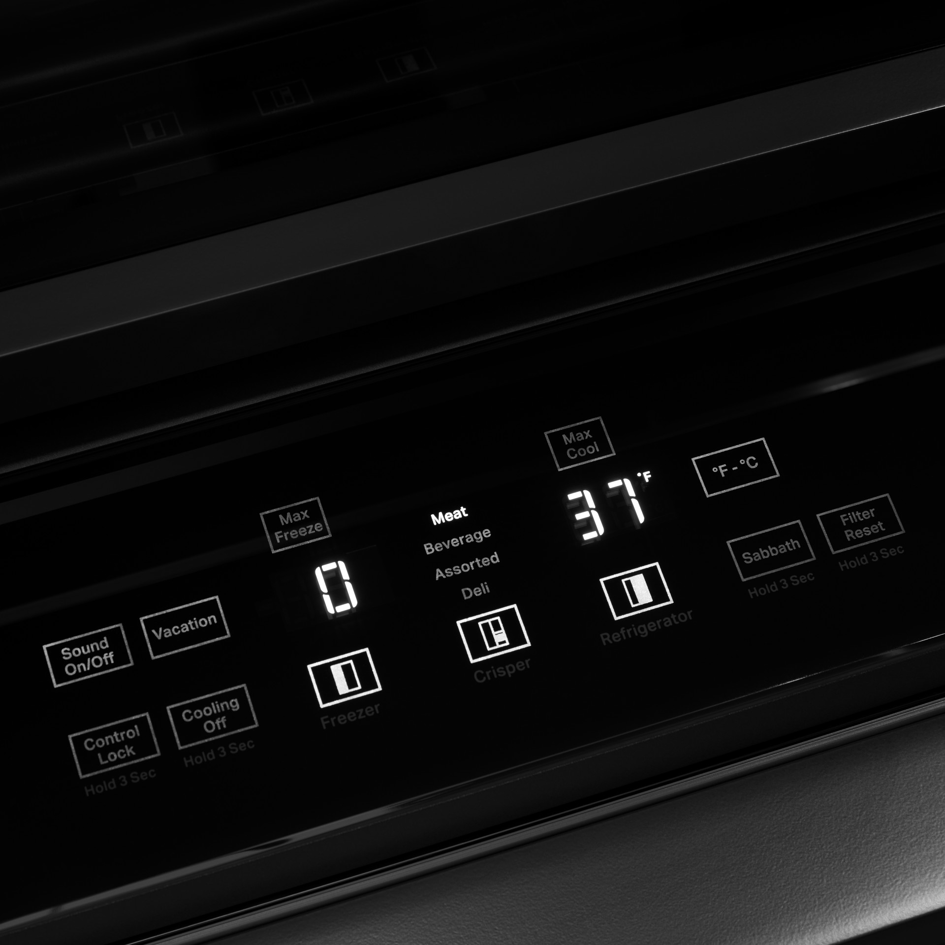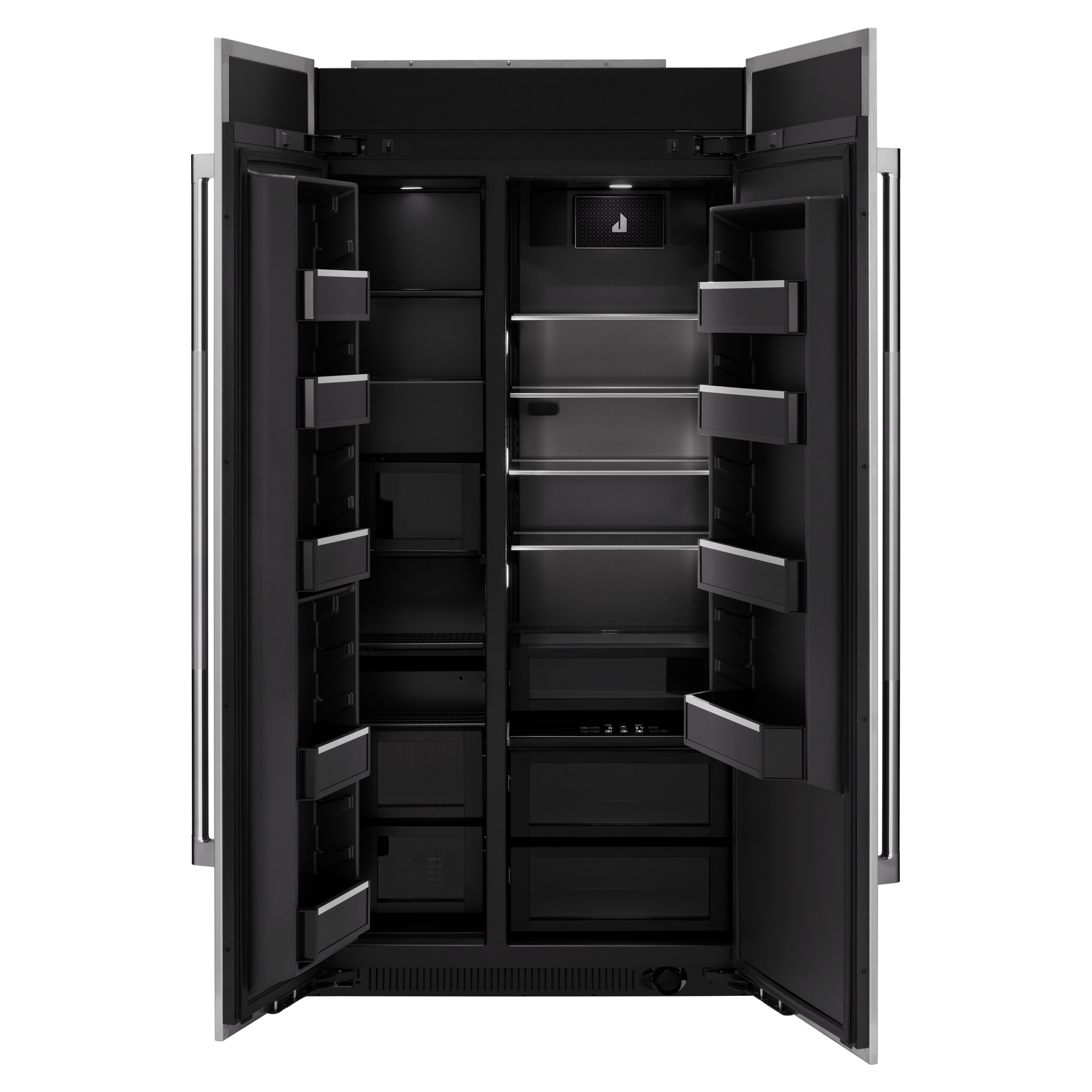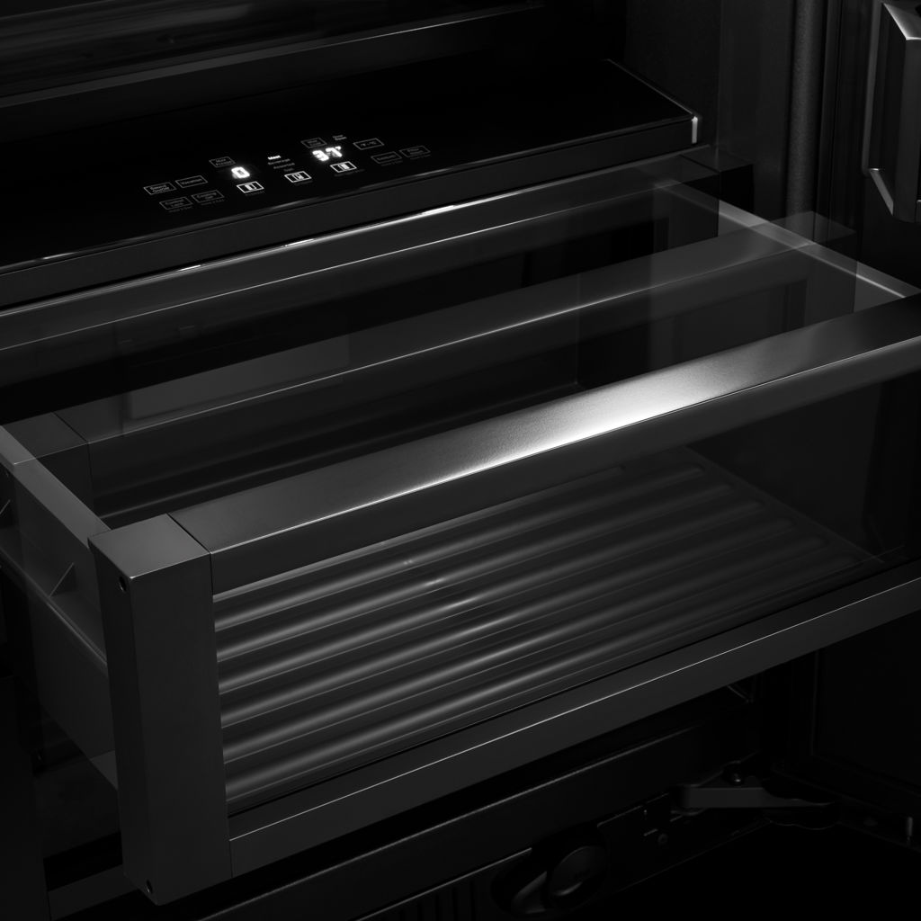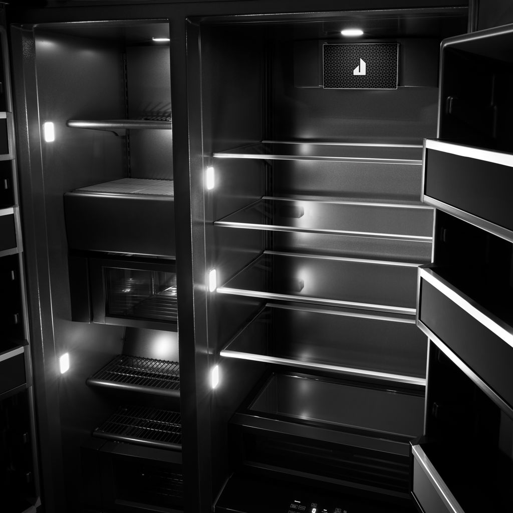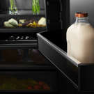 The exclusive Obsidian Black interior will amaze your guests as the colors of the food are highlighted throughout the refrigerator, including the matching crispers and freezer.