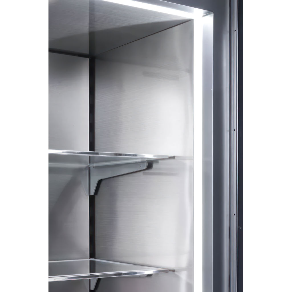 LED lighting seamlessly integrated into a fully wrapped, all stainless steel interior. Food is no longer just stored, it's presented.