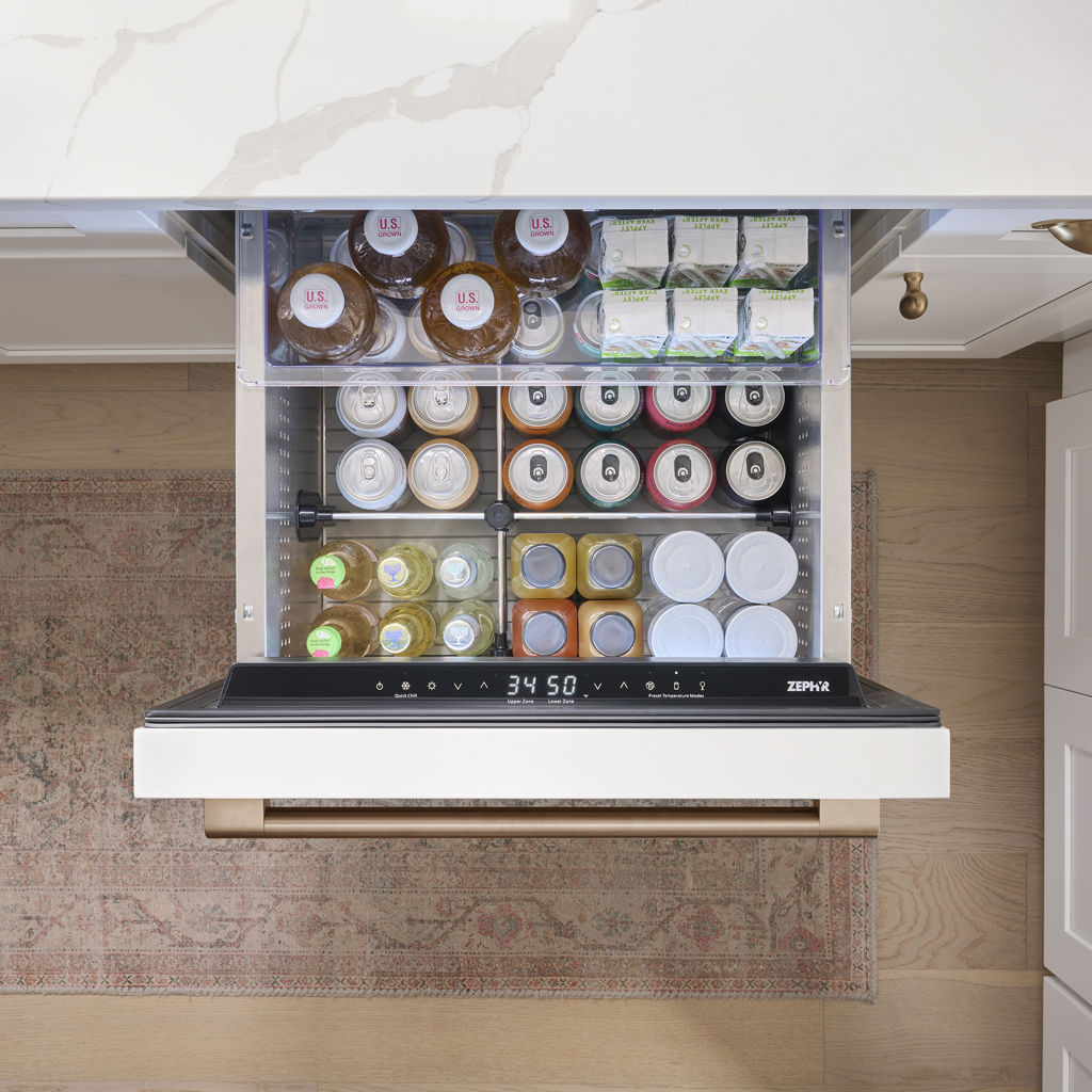 From kids’ snacks to fresh produce to ready-to-serve party foods and beverages, these elegant panel-ready dual-zone refrigerator drawers blend seamlessly with your cabinetry while adding extra storage wherever you need it.