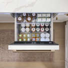 For organization, it offers full-extension soft-close drawers, adjustable dividers, a silicone mat to prevent items from sliding, and customizable panel-ready fronts for a perfect kitchen match. Drawer handles and wood panels sold separately.
