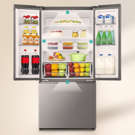 The refrigerator's elegant design with a stainless steel finish allows it to integrate perfectly into any space, offering an elegant and sophisticated look to the entire space. Thanks to advanced cooling technology, an optimal temperature is constantly maintained in your refrigerator and freezer, keeping food perfectly chilled, wherever it's placed.