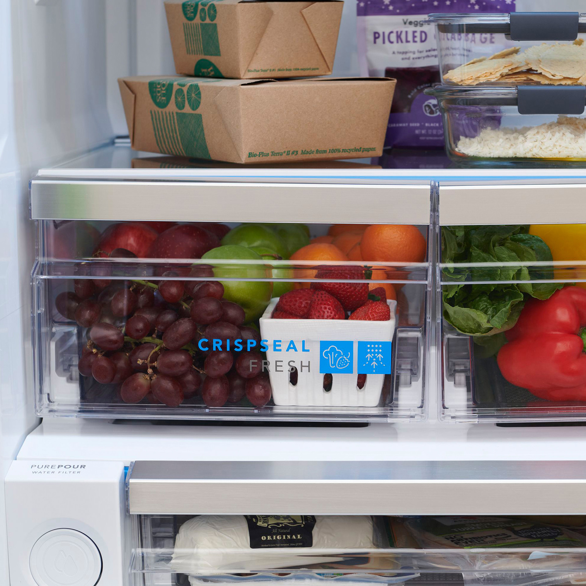 Keep produce crisp and tasty longer. Our 3 advanced technologies block dry air, automatically optimize humidity while eliminating excess moisture, and our built-in antioxidant filter reduces ethylene gas, odors and preserves product color.
