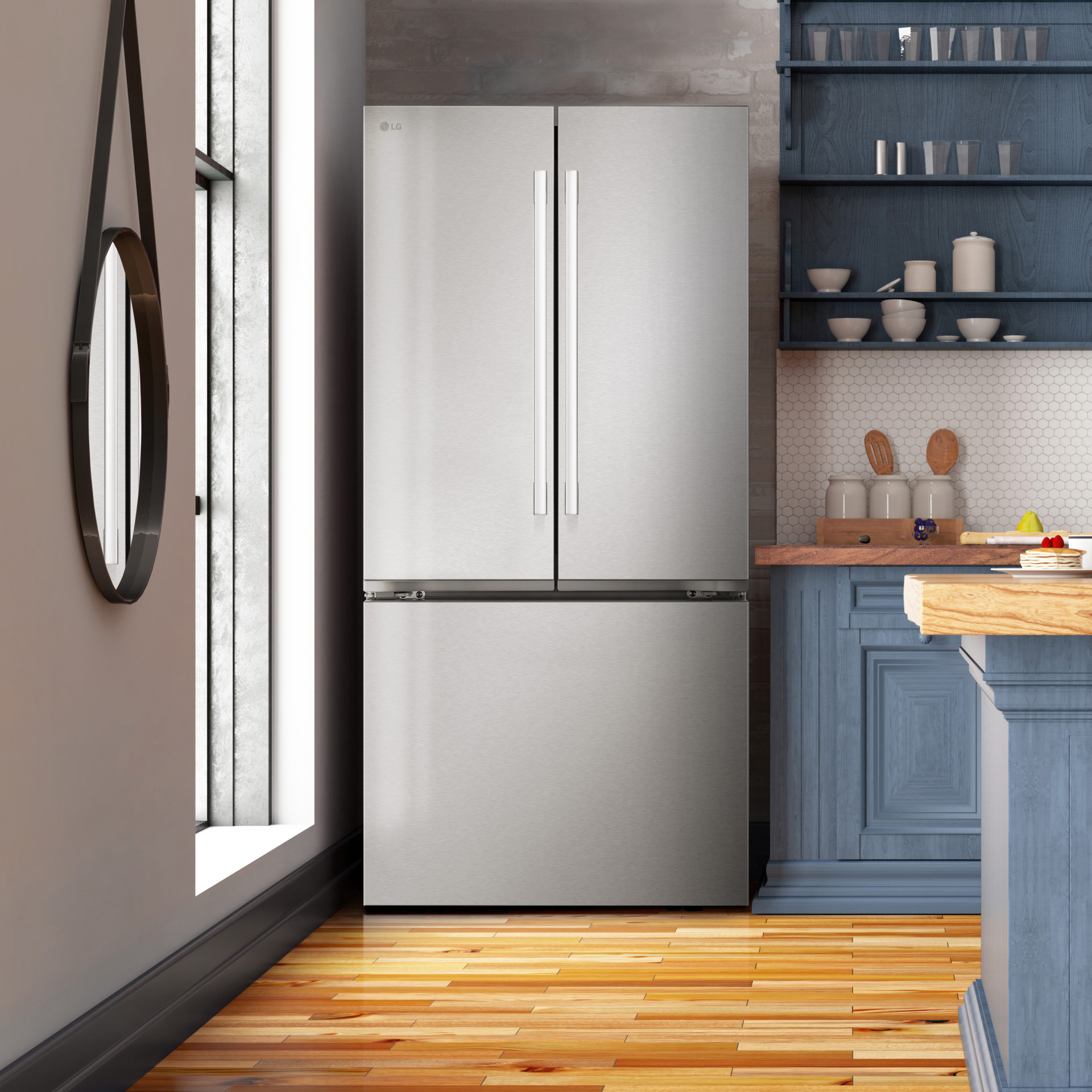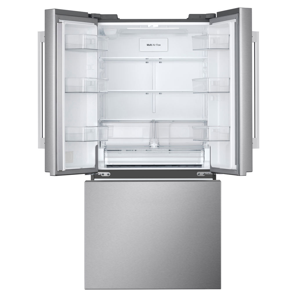 Maximize your space with a French-door refrigerator designed for 33” wide cabinet openings. Enjoy upscale styling and enhanced functionality, plus more space for groceries with 25 cu. ft. of organized storage.