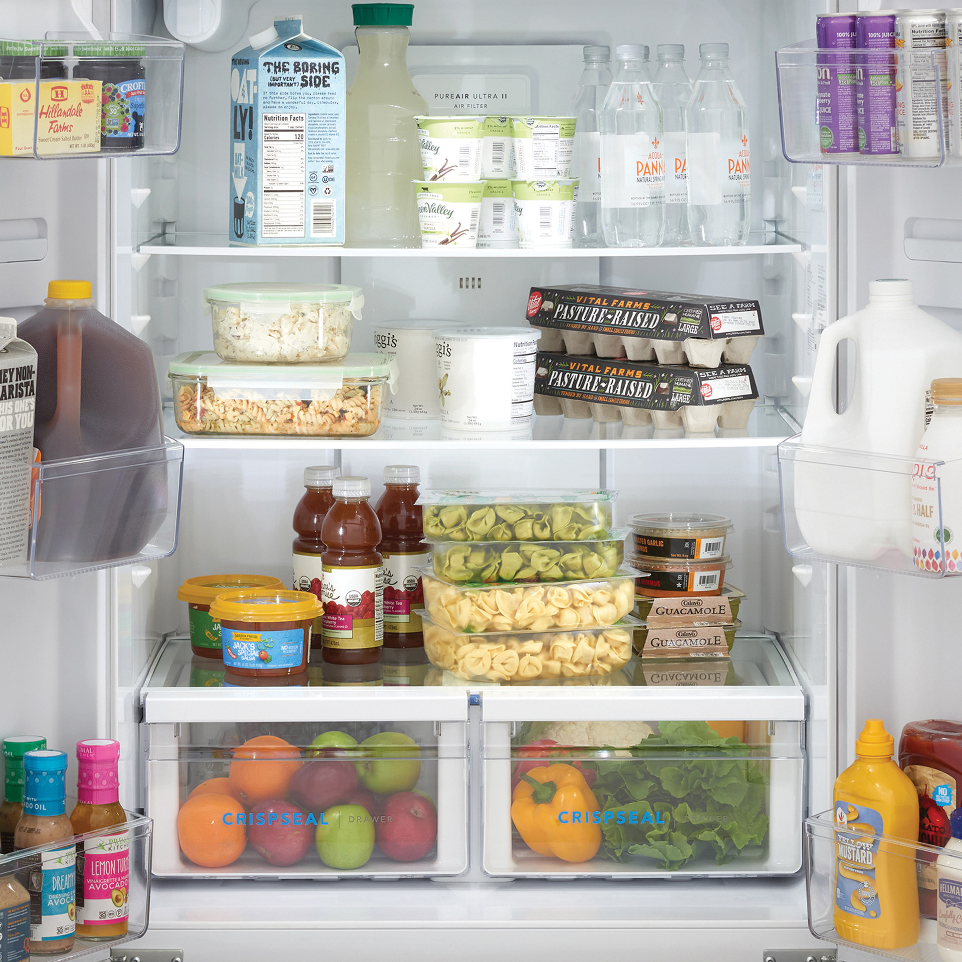 Find a place for all your favorites with our large-capacity door bins, edge-to-edge glass shelves, and 3-level freezer.