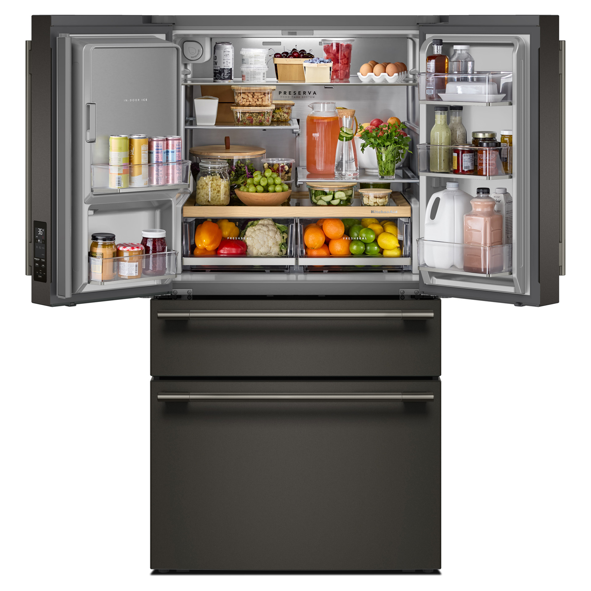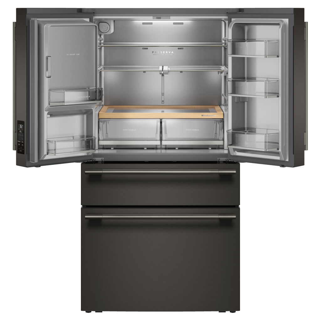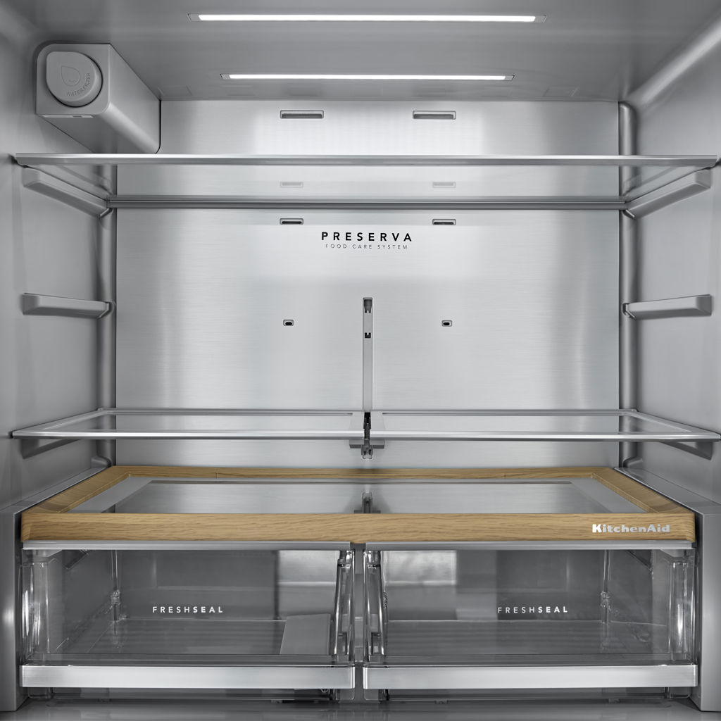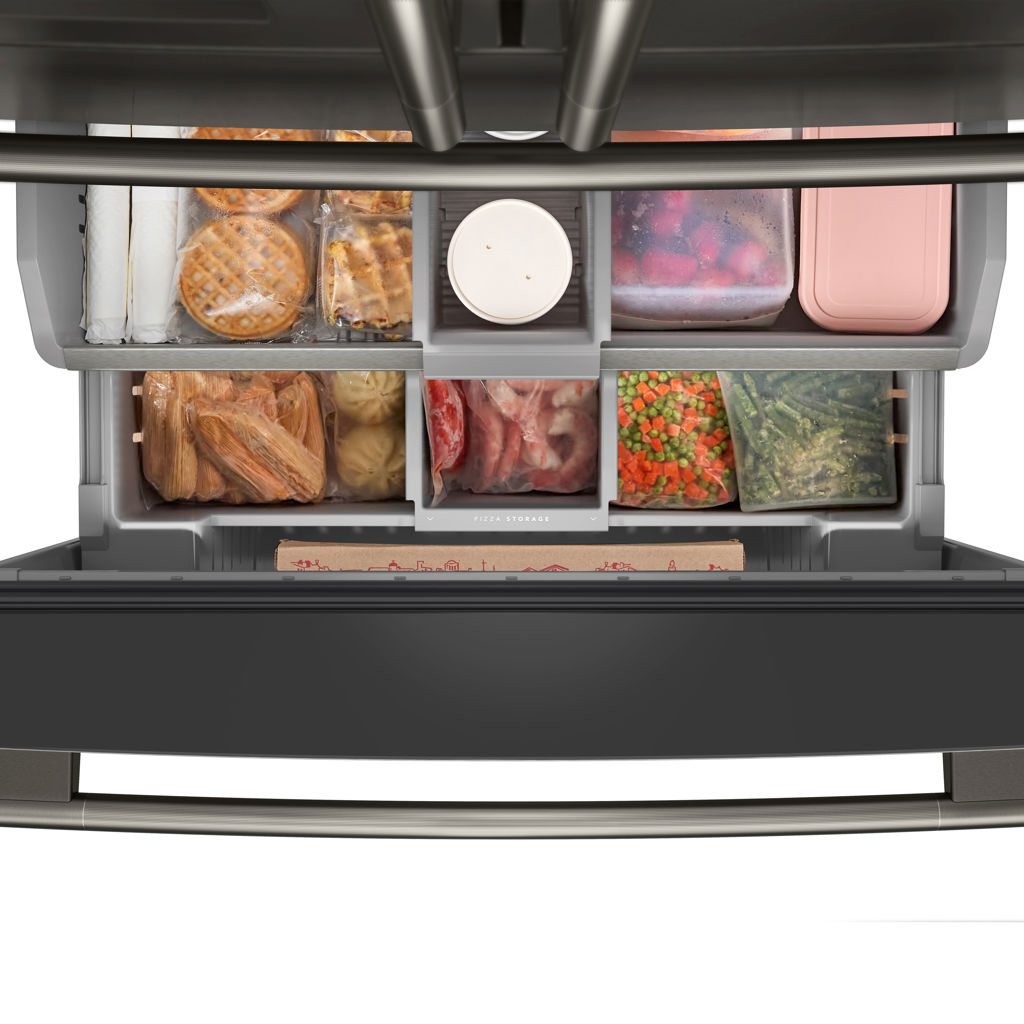 The 29 cu. ft. French door refrigerator with external water and ice and a full-width FreshChill™ refrigerated drawer gives you the capacity and organization you need to store everything you picked up at the market, without ever losing sight of it.