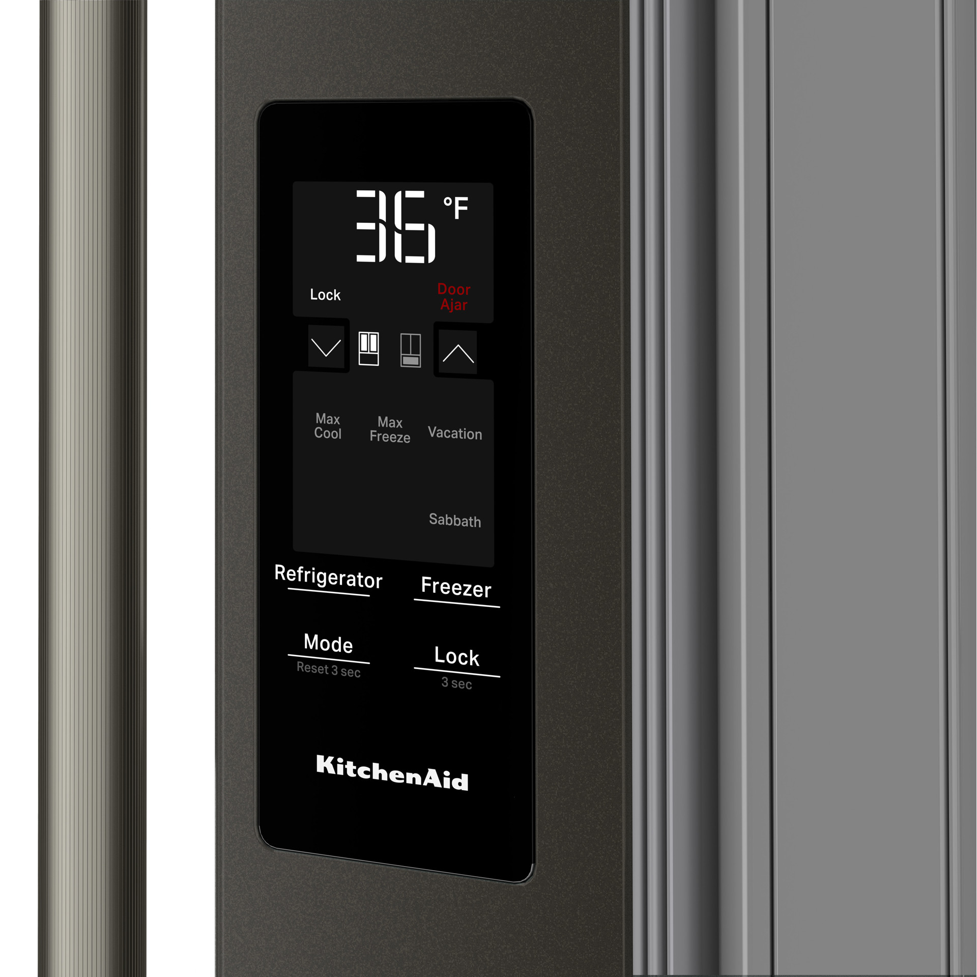 Located on the outside of the door, putting temperature, ice maker, and water-filter functions at your fingertips for quick, easy adjustments. The smooth, seamless design is easy to clean.