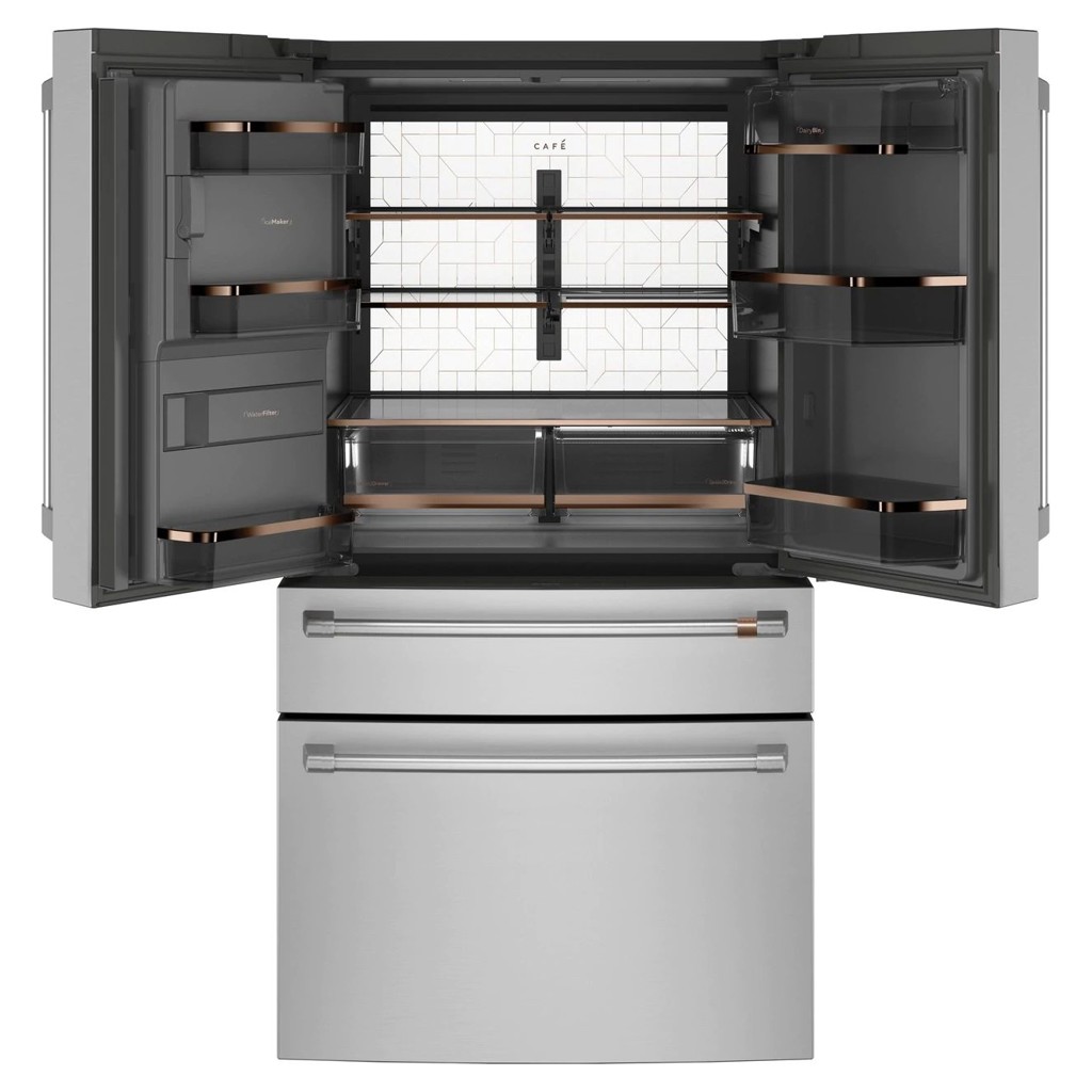 Your style is our substance. Find undeniable style behind every door with the Café 4-Door Refrigerator. Sophisticated aesthetic details invite you to discover imaginative features, such as a convertible drawer with a Soft Freeze setting and a hands-free automatic refill dispenser for a refrigeration solution that matches your style.