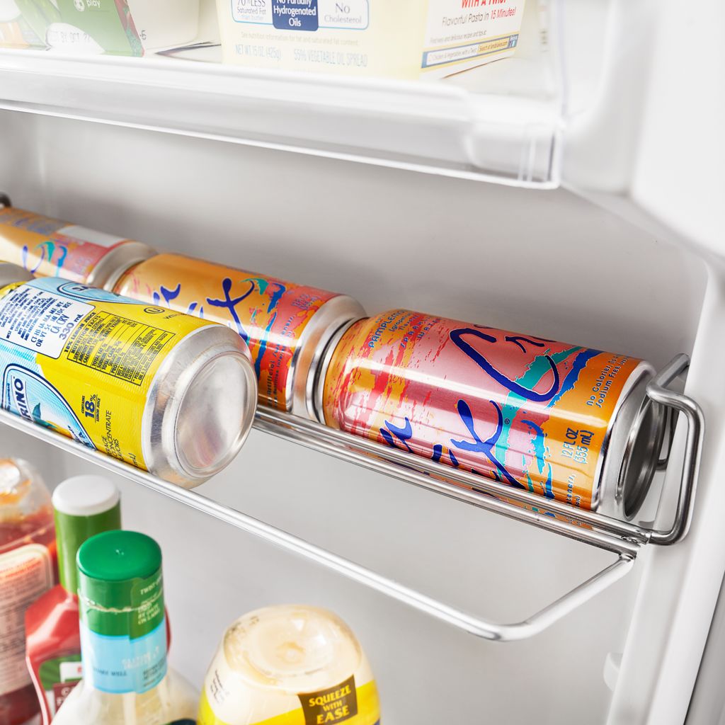 A can rack in the door frees up space and the frameless glass shelves in this refrigerator with a deli drawer let you store more on each shelf for even more versatility.