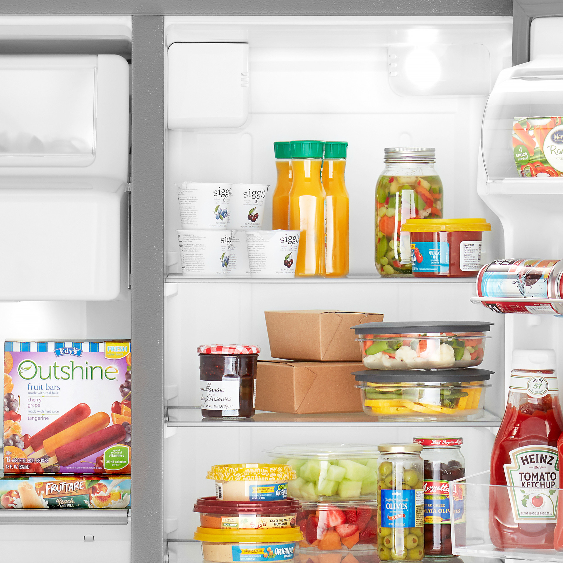 Store and find it all in this side-by-side refrigerator with cleverly designed spaces for storing the items you use most frequently.
