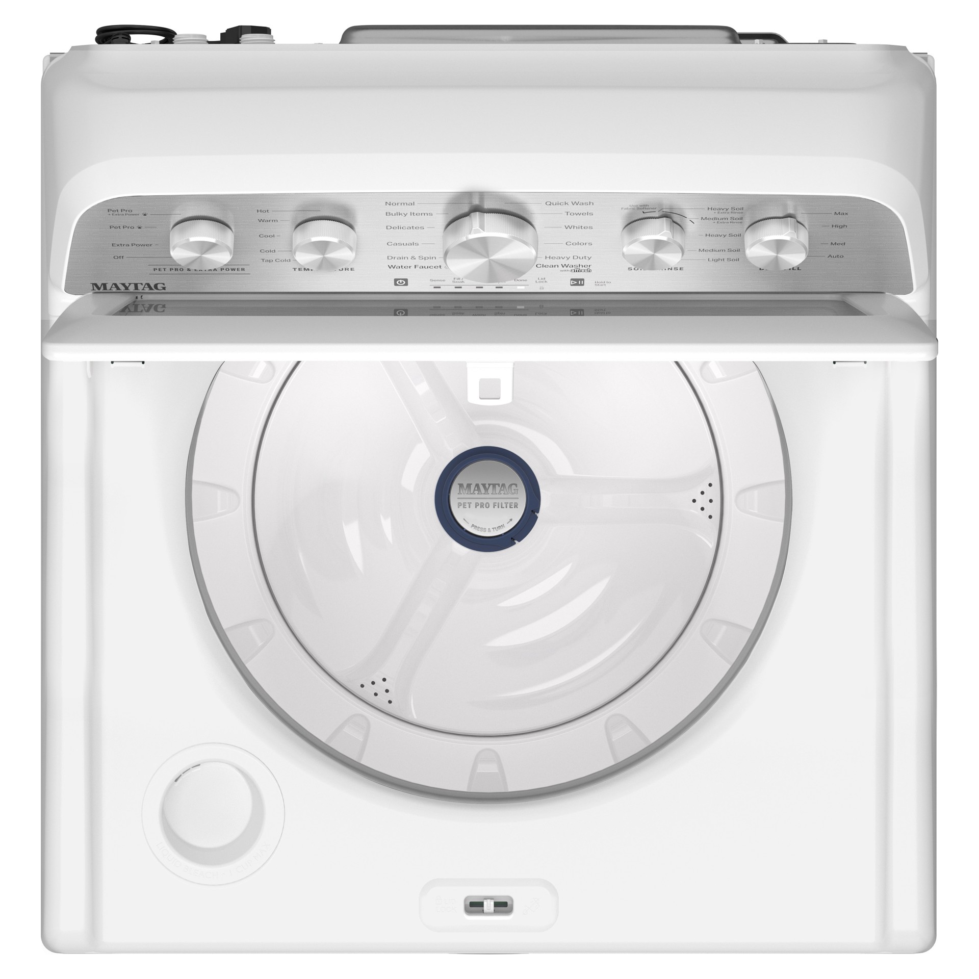 Tackle pet hair like a pro with the Maytag® Pet Pro System. The built-in Pet Pro Filter in the washer removes up to 5x more pet hair, while the large lint trap in the matching dryer captures and clears pet hair load after load.