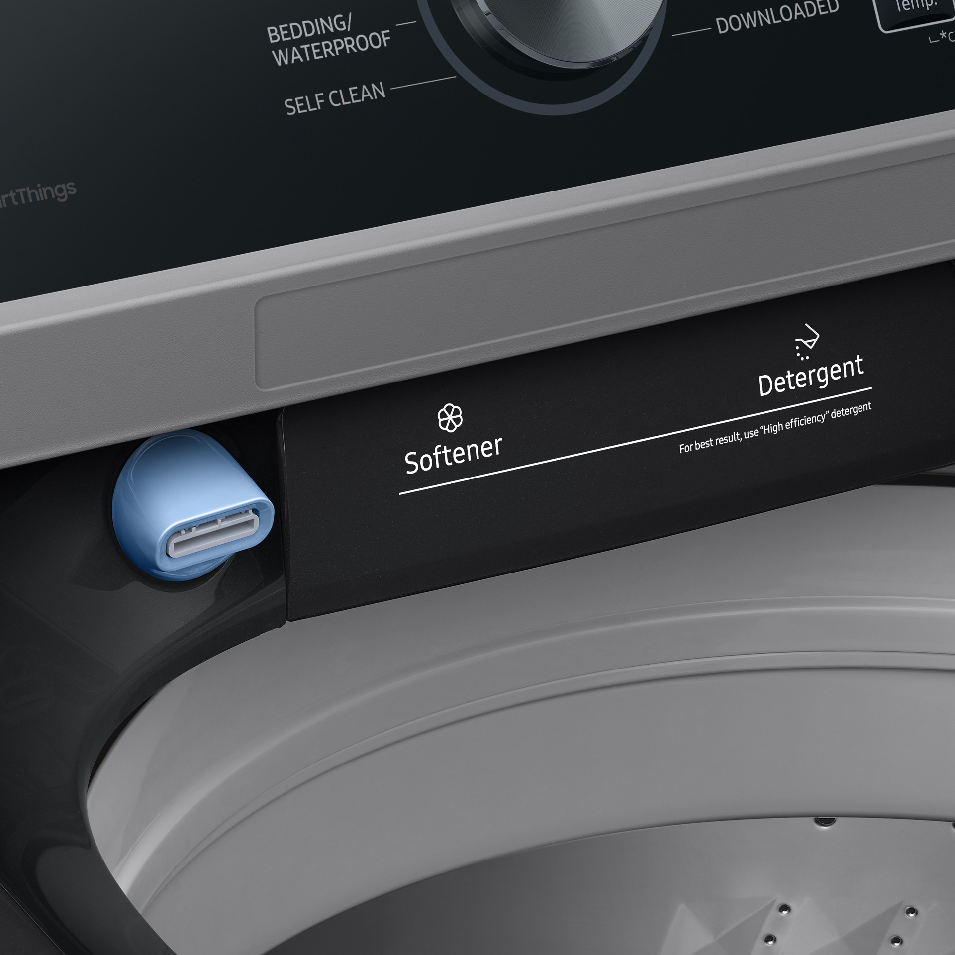 Samsung's Smart Care app interacts with the washer to perform immediate diagnostics and offer quick solutions directly on your mobile device.