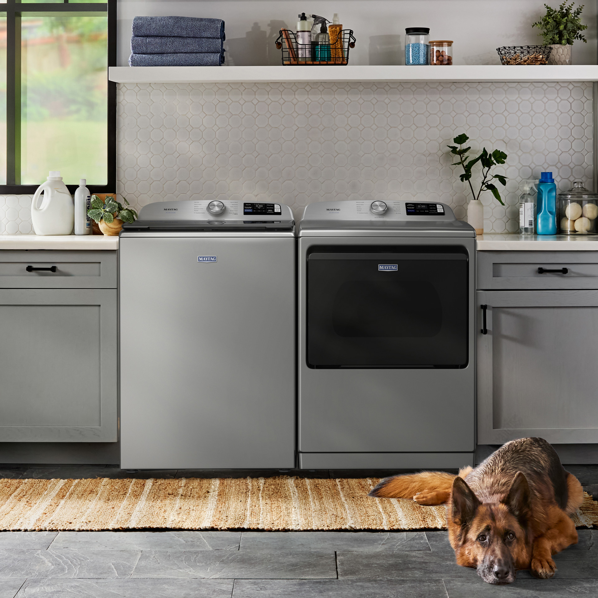 The Maytag® Pet Pro washer is specially designed to tackle pet hair. Its built-in Pet Pro filter effectively captures pet hair and visibly removes it from your clothes, leaving laundry cleaner and fresher.
