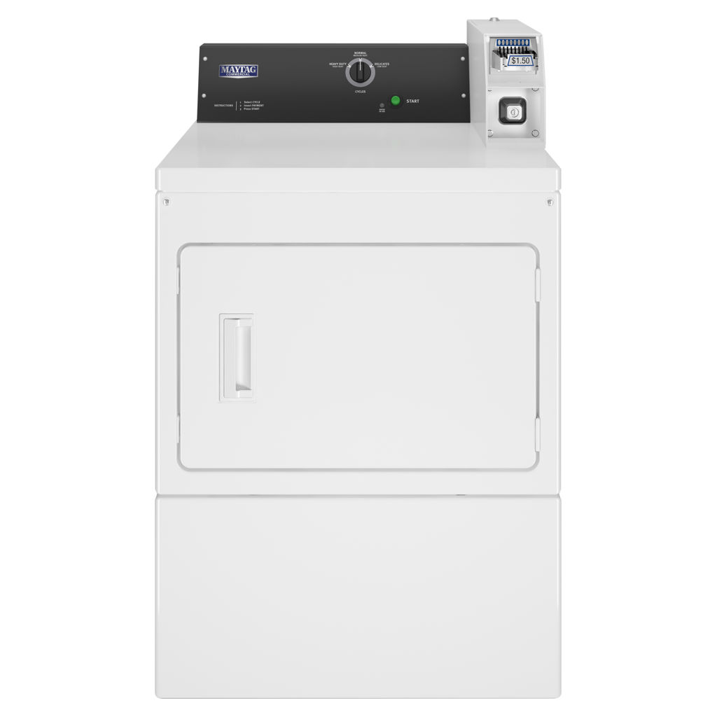 The Maytag MDG20CSAWW commercial dryer stands out with its generous 7.4 cu. ft. capacity, ideal for handling large laundry loads in fewer cycles. This extra-large capacity helps improve operational efficiency and meet the needs of high-traffic users.